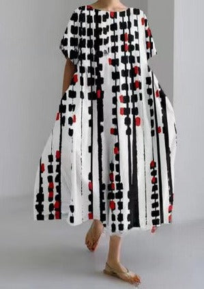 Black Red Dot Cotton Dresses Pockets Patchwork Summer