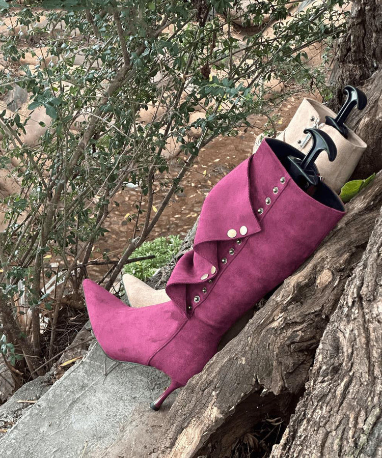 Black Rivet Splicing Suede Stiletto Boots Pointed Toe