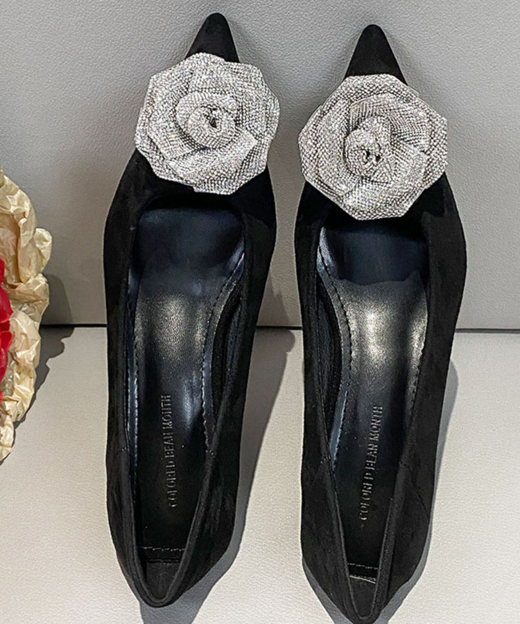 Black Splicing Suede Kitten Heel Shoes Pointed Toe
