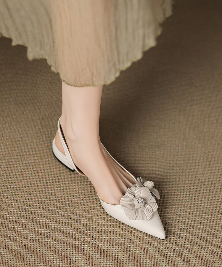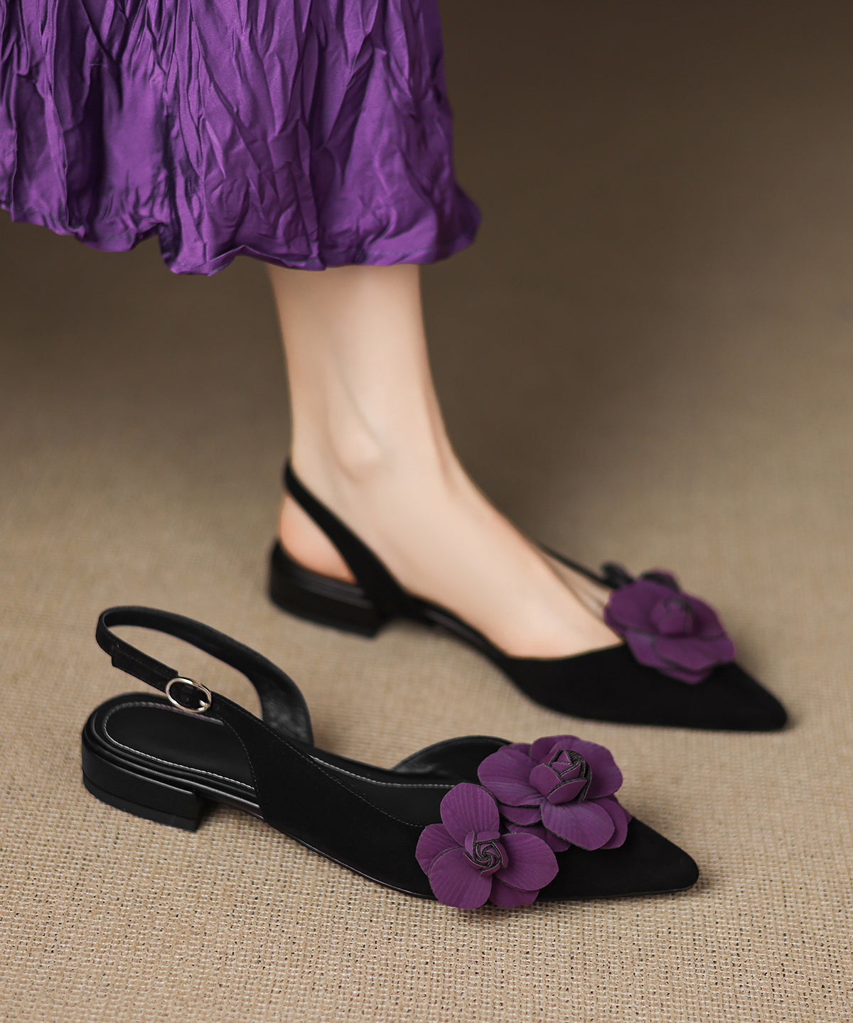Black Suede Fitted Floral Splicing Sandals Pointed Toe