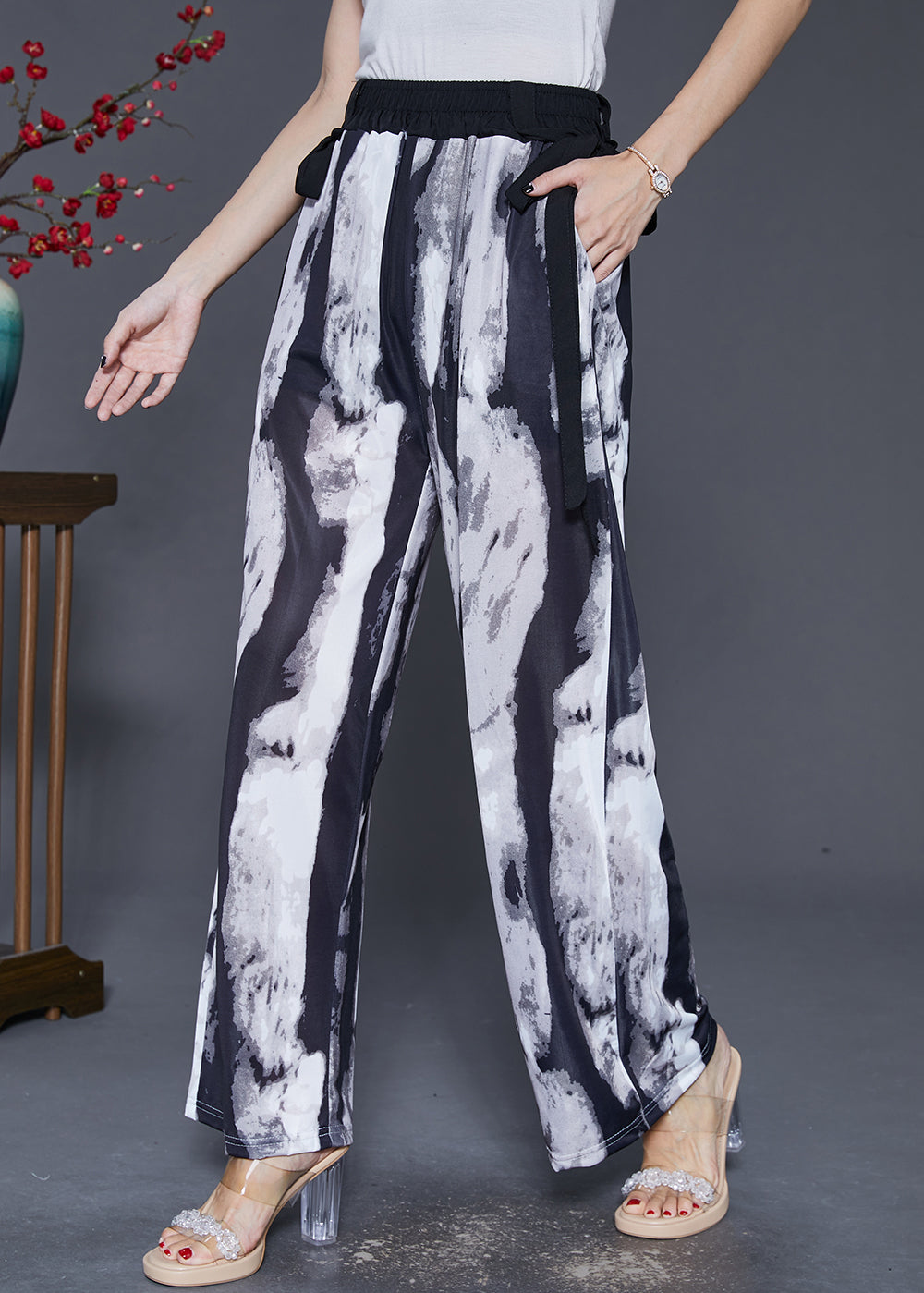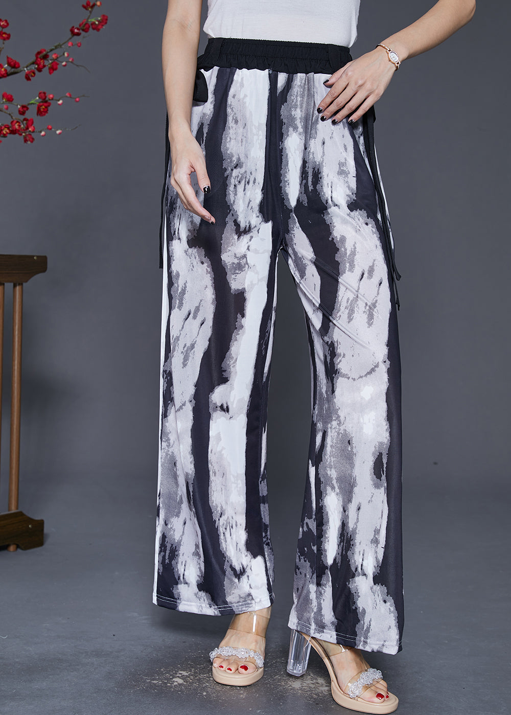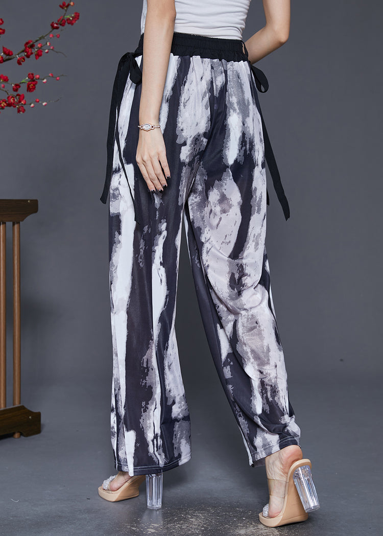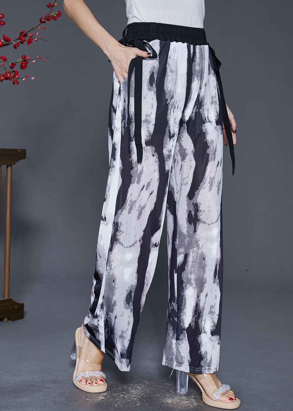 Black Tie Dye Chiffon Straight Pants Trousers Draping Fall
