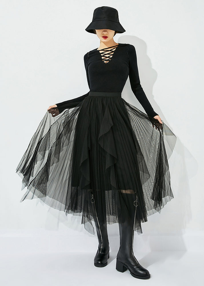 Black Tulle Holiday A Line Skirts High Waist Oversized Summer