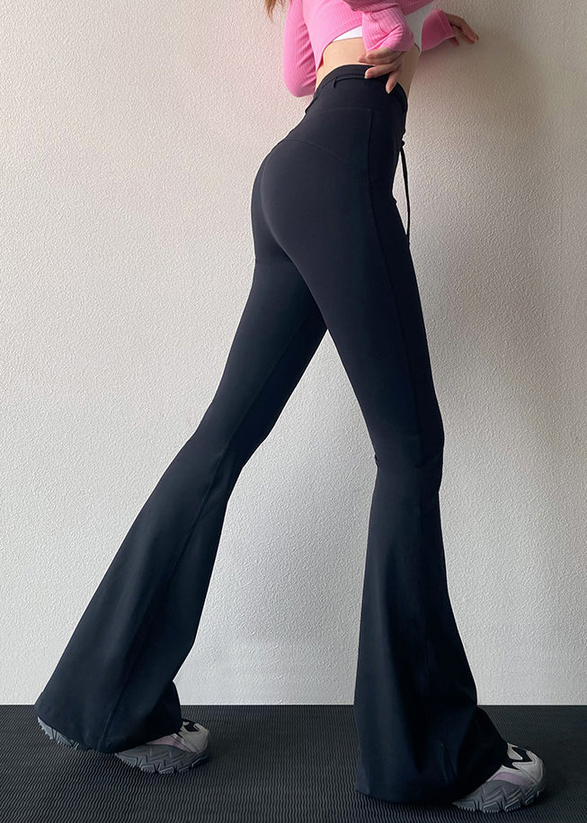 Black Tummy Control Tie Waist Flare Leggings