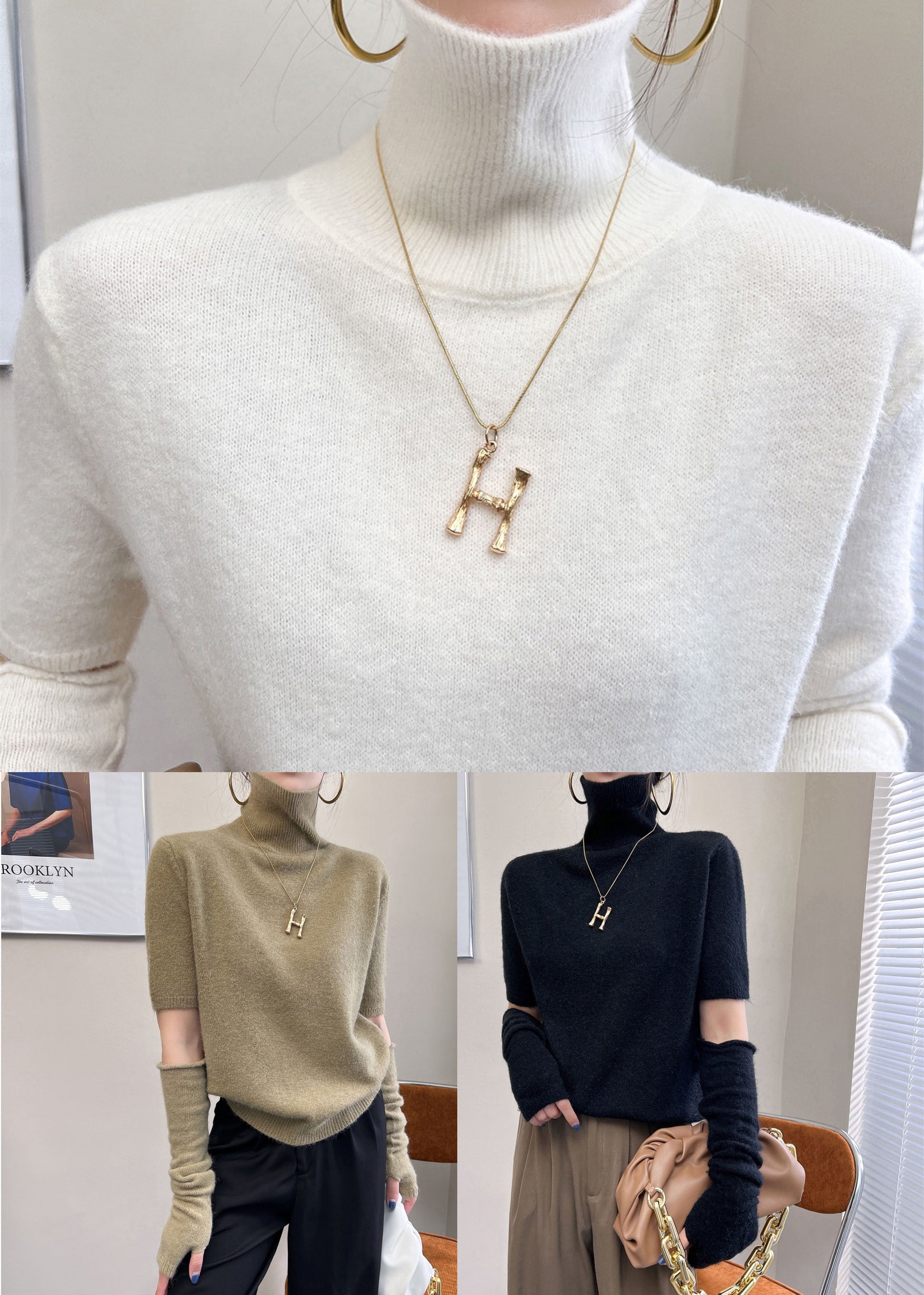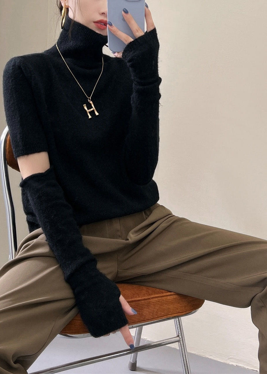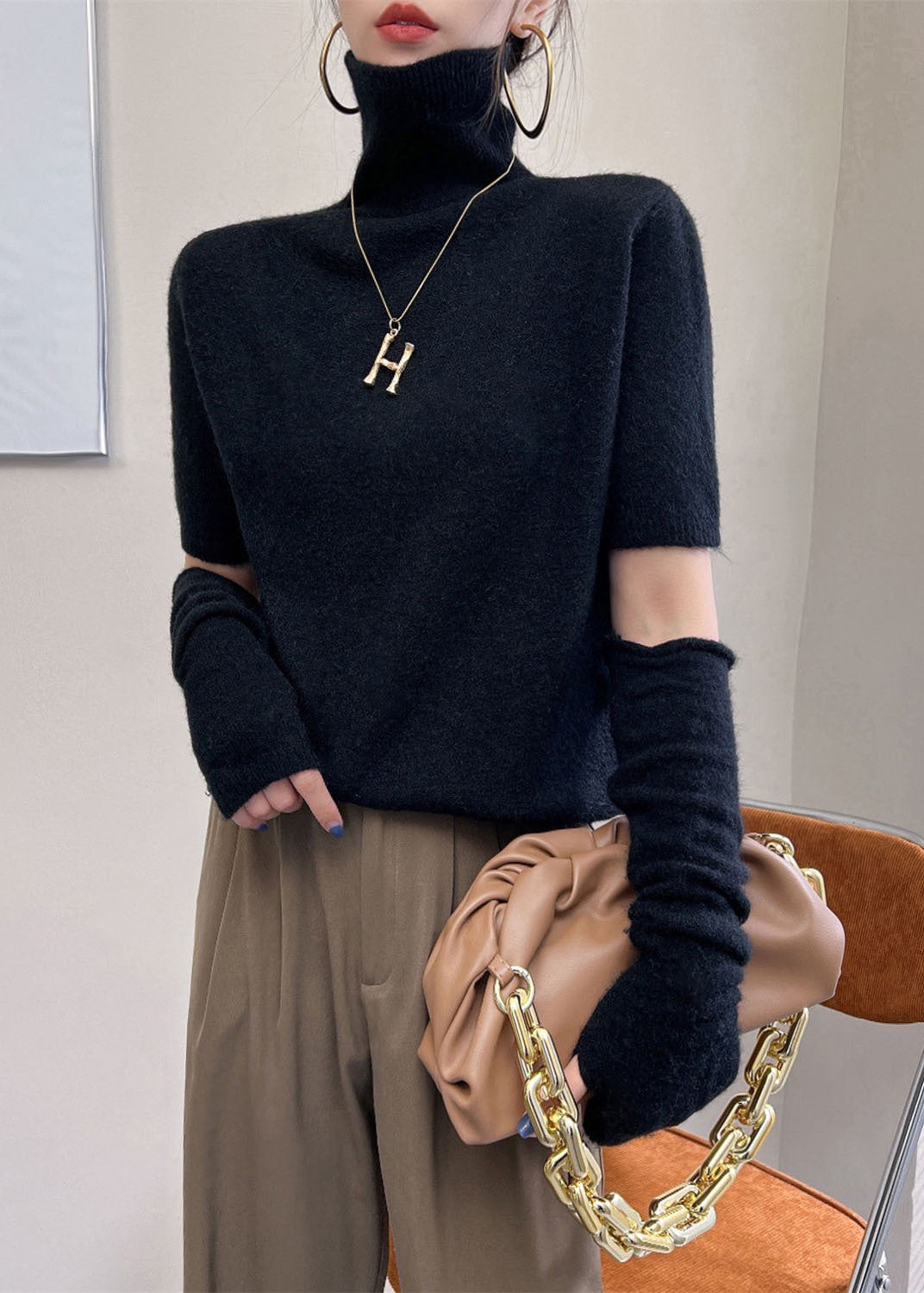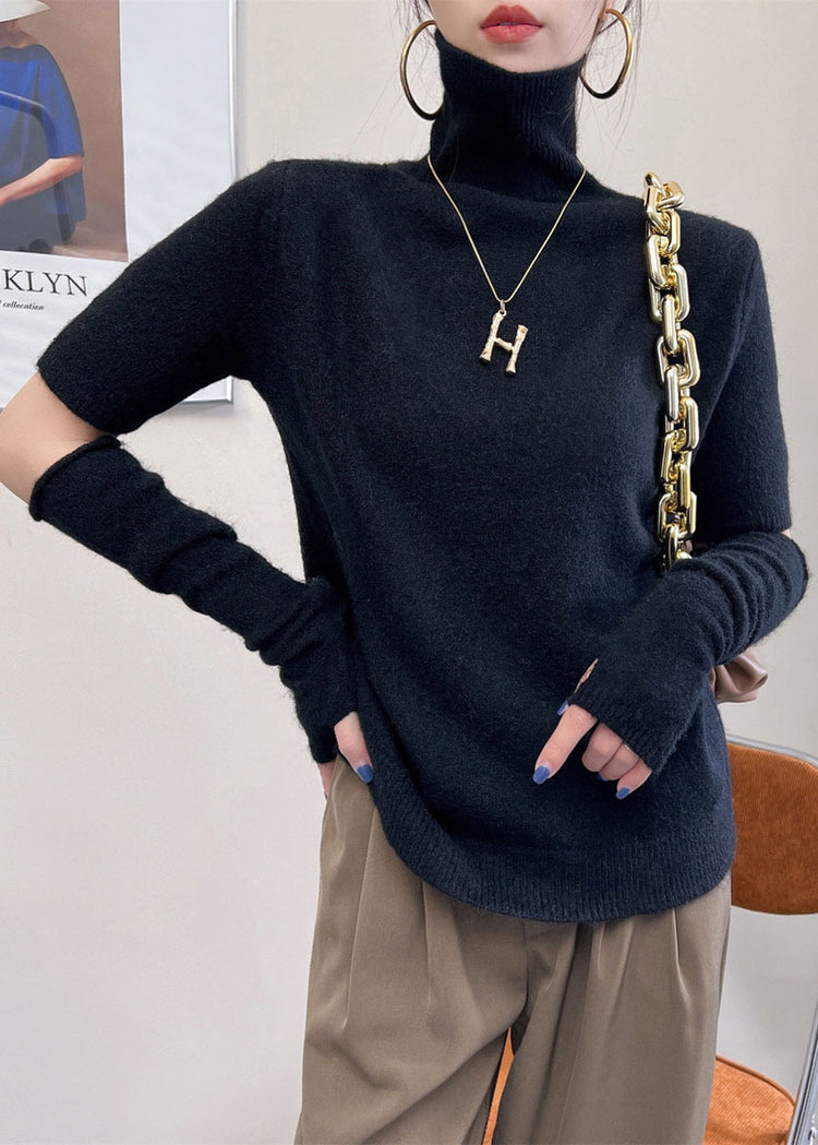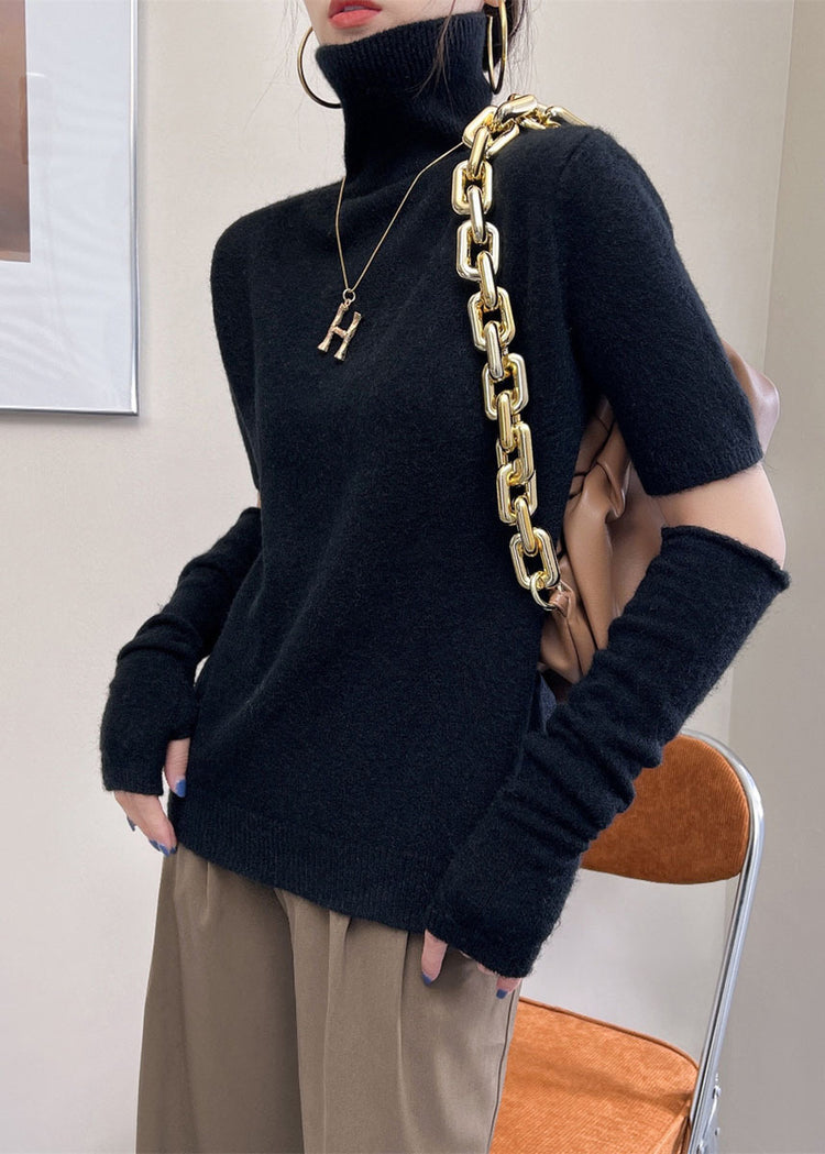 Black Warm Knit Original Design Sweater Tops Turtle Neck Winter