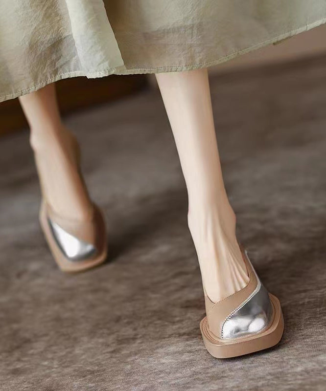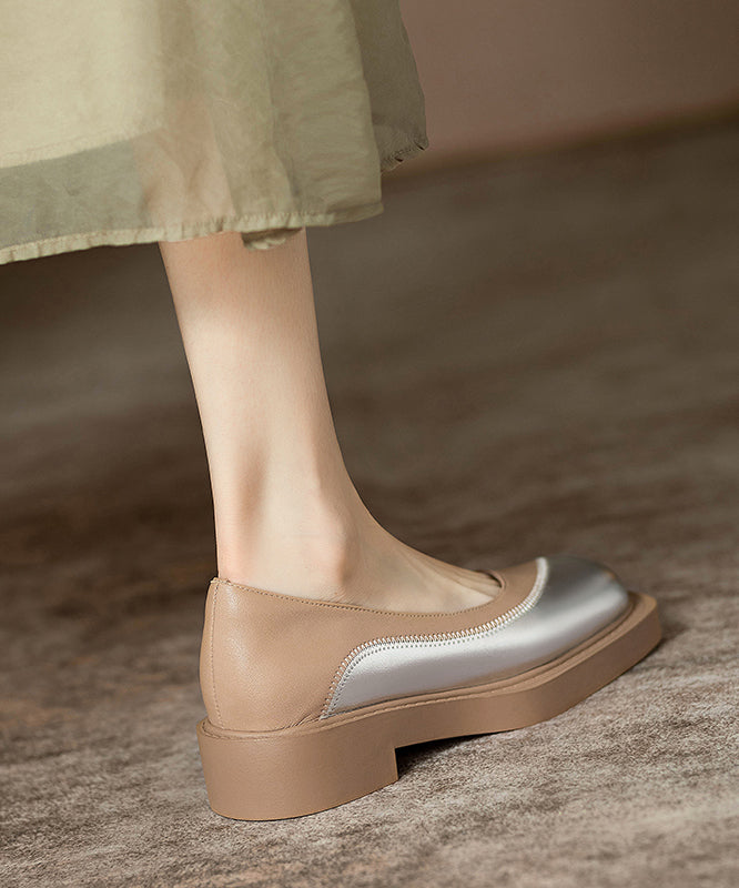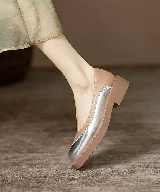 Black Women Comfy Splicing Chunky Cowhide Leather Loafer Shoes