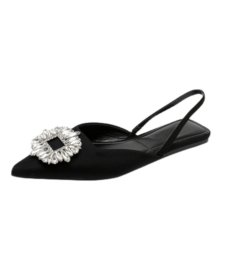 Black Zircon Faux Leather Comfy Walking Sandals Pointed Toe