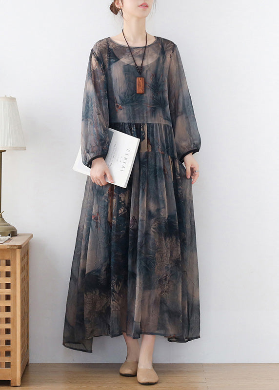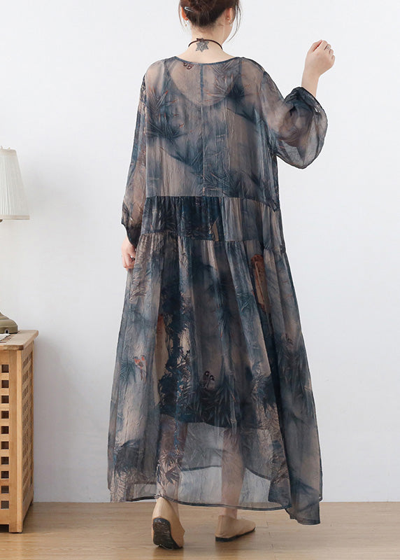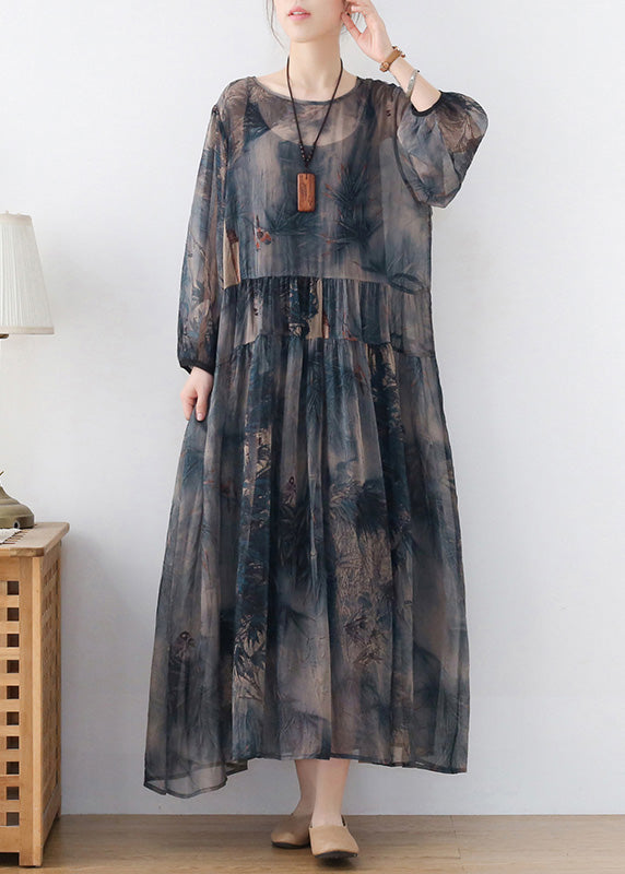 Blue Chiffon Long Dress And Spaghetti Strap Dress Two Pieces Set Wrinkled Draping Summer