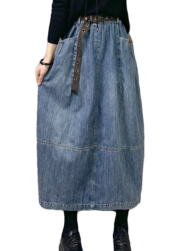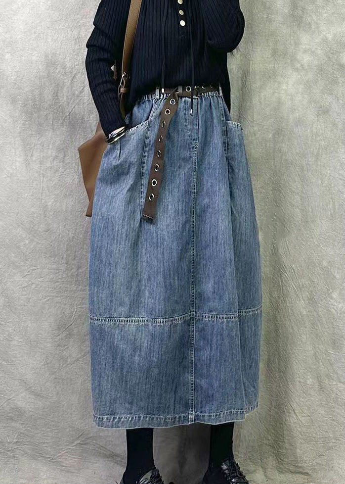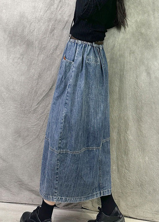 Blue Elastic Waist Patchwork Denim A Line Skirts Pockets