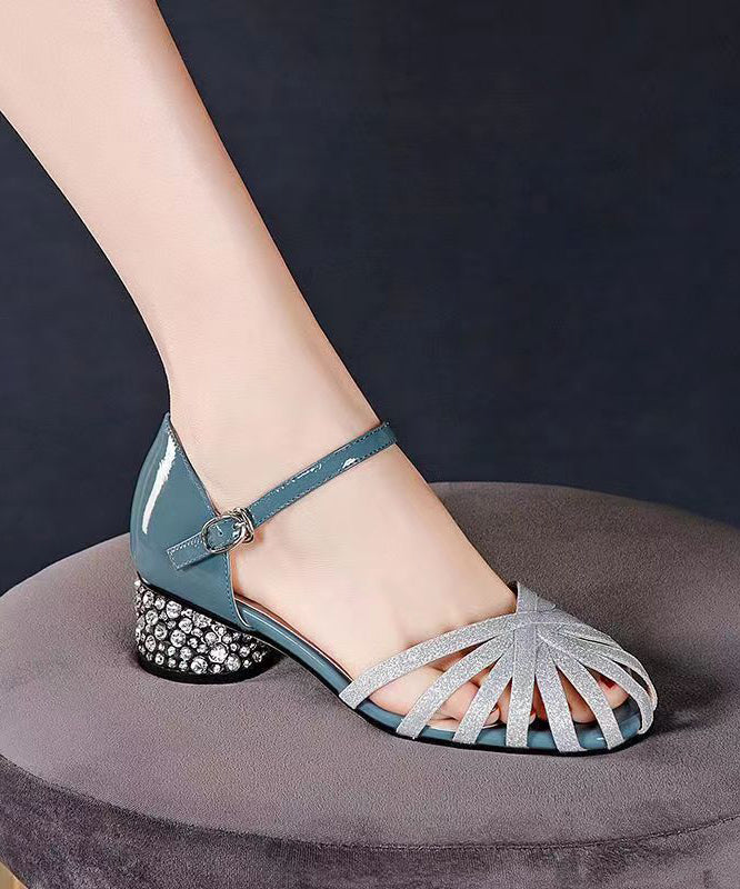 Blue Fashion Hollow Out Buckle Strap Chunky Sandals
