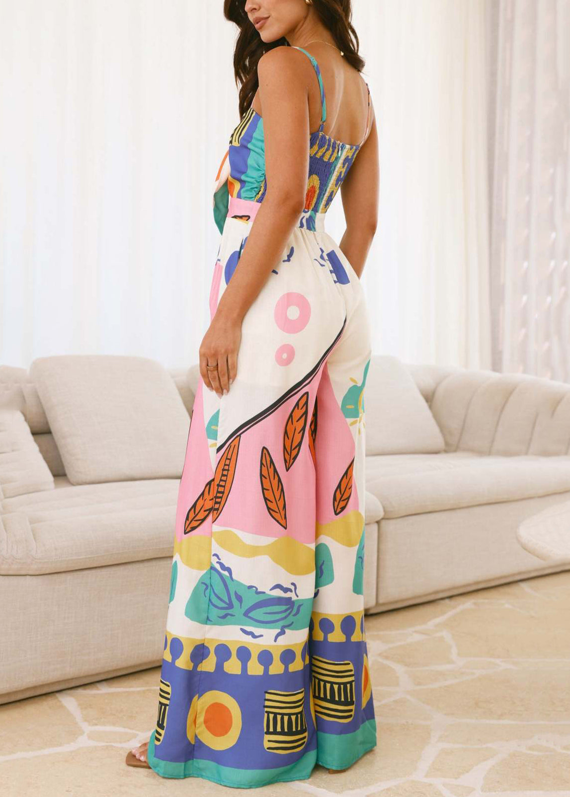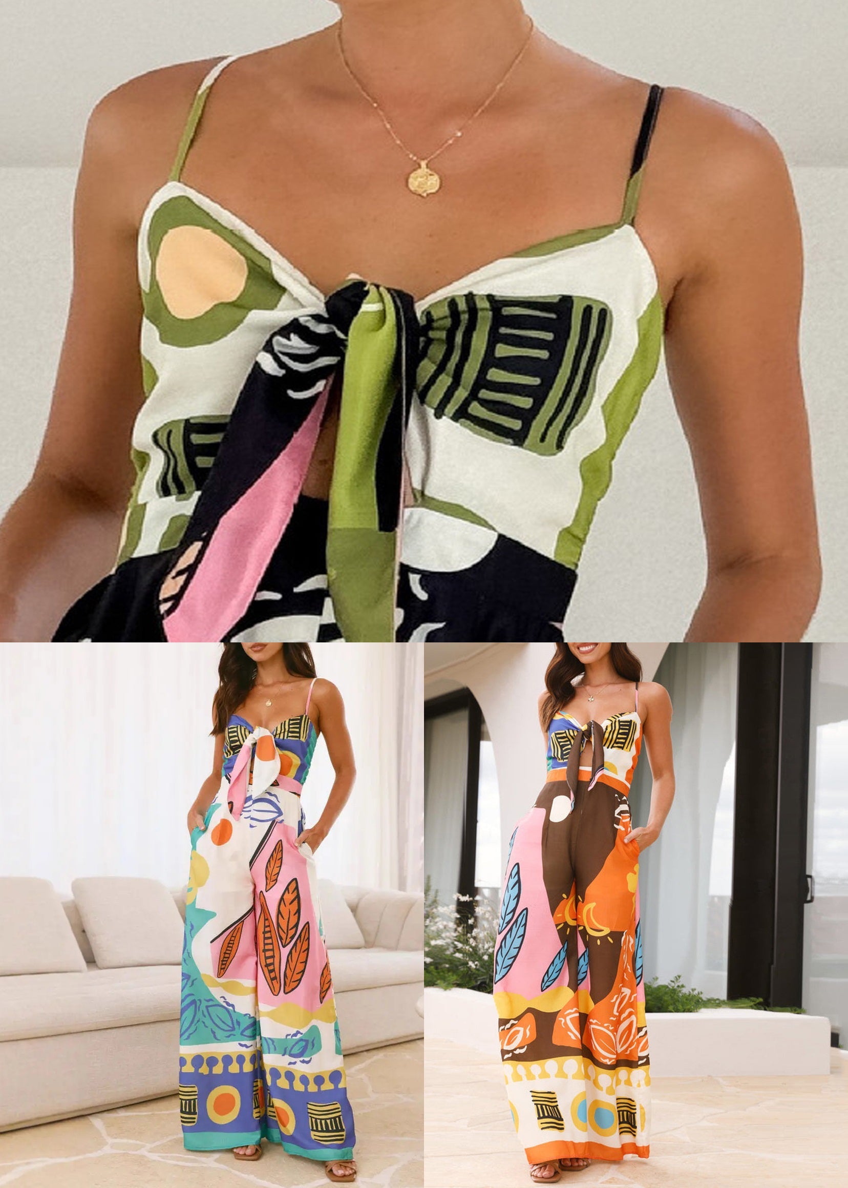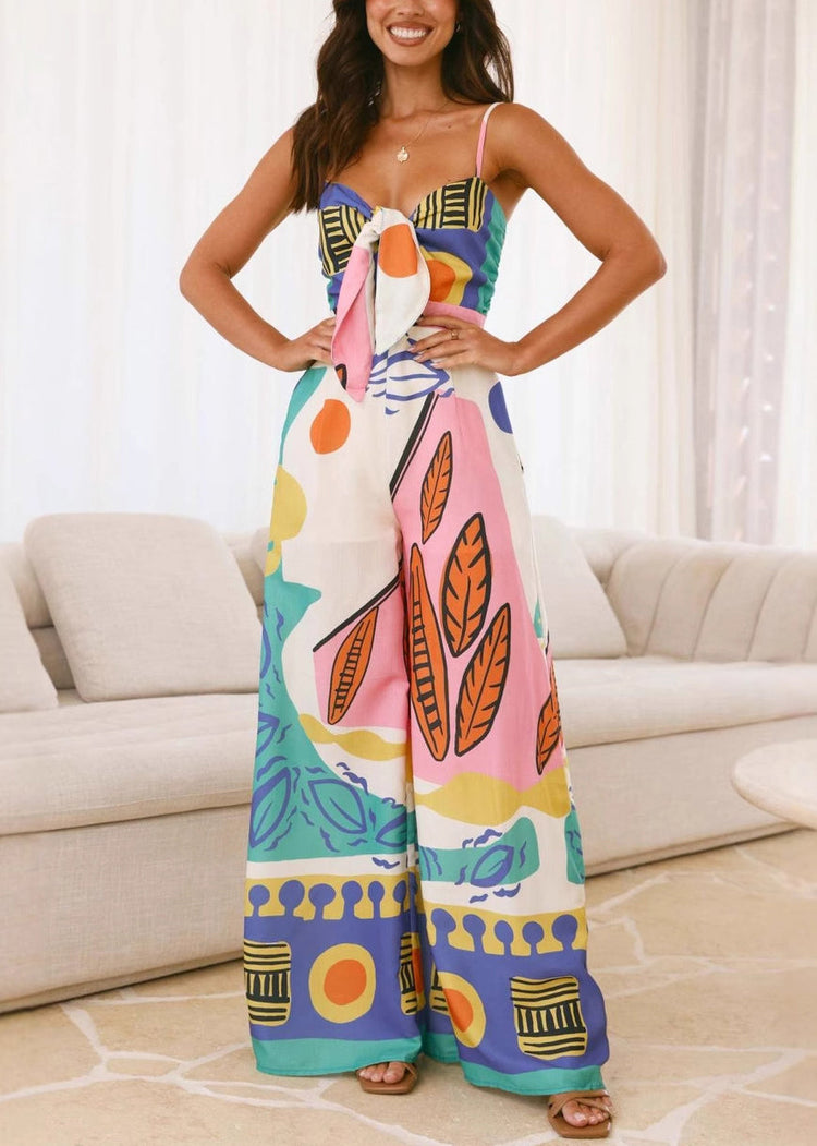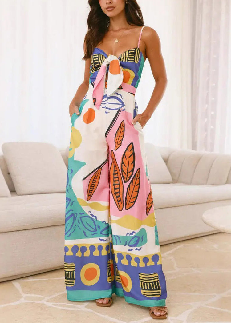 Blue Lace Up High Waist Cotton Spaghetti Strap Jumpsuits V Neck Sleeveless