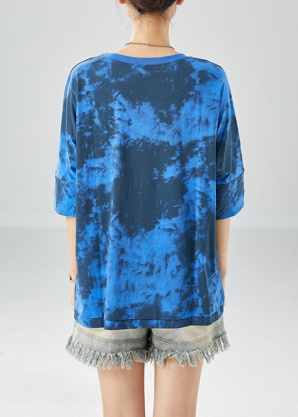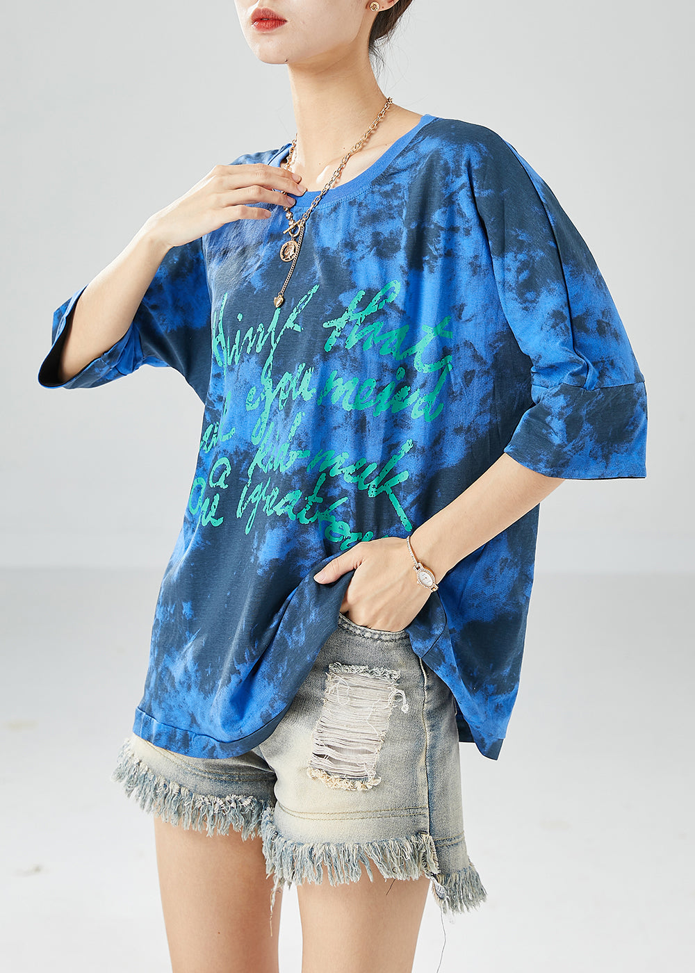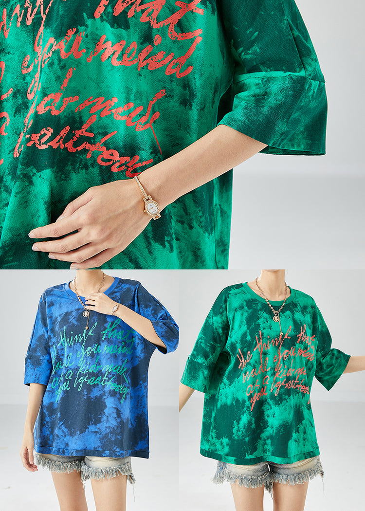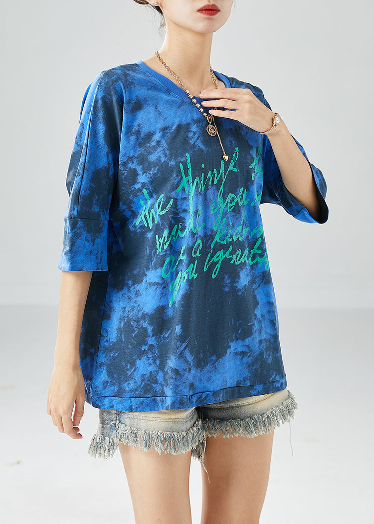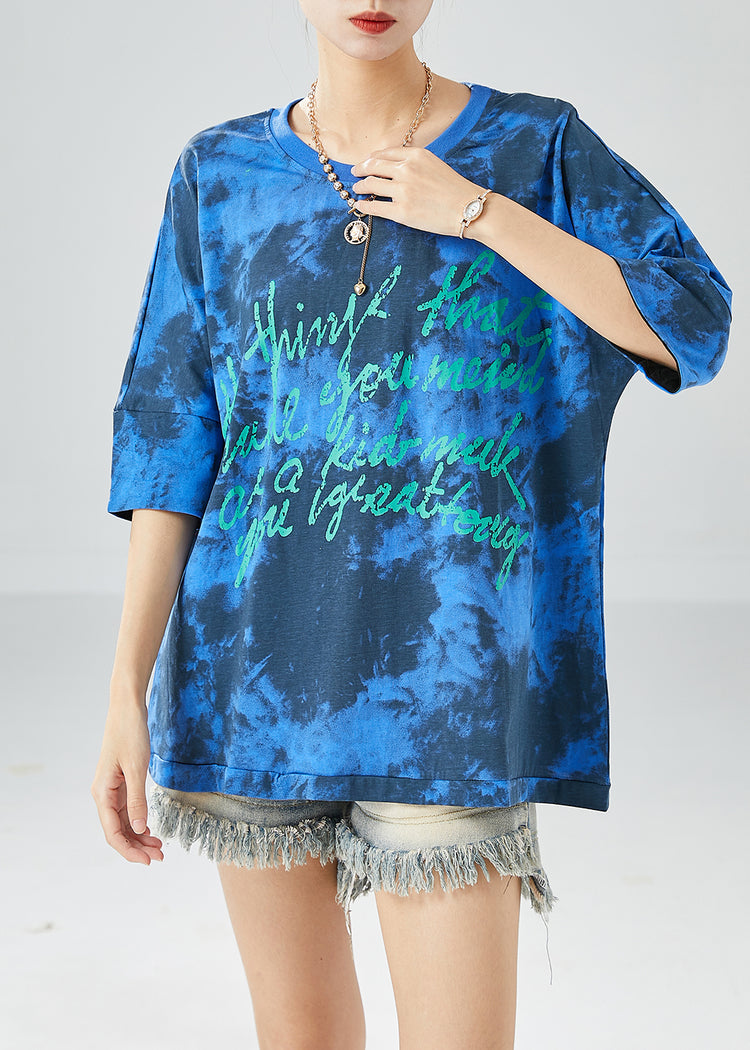 Blue Letter Print Cotton Tank Oversized Tie Dye Summer