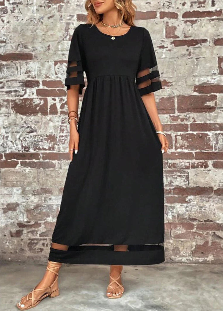 Bohemian Black O-Neck Tulle Patchwork Long Dress Summer