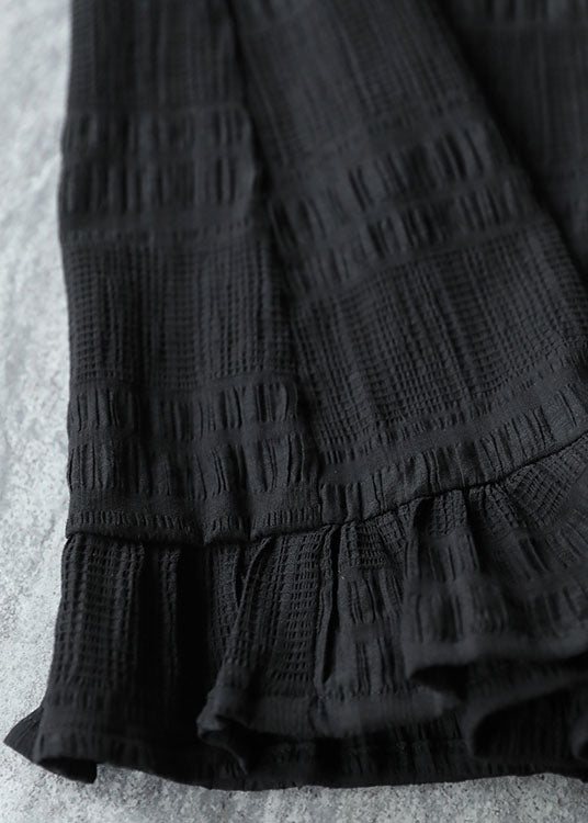 Bohemian Black Peter Pan Collar Patchwork Ruffles Holiday Dress Short Sleeve