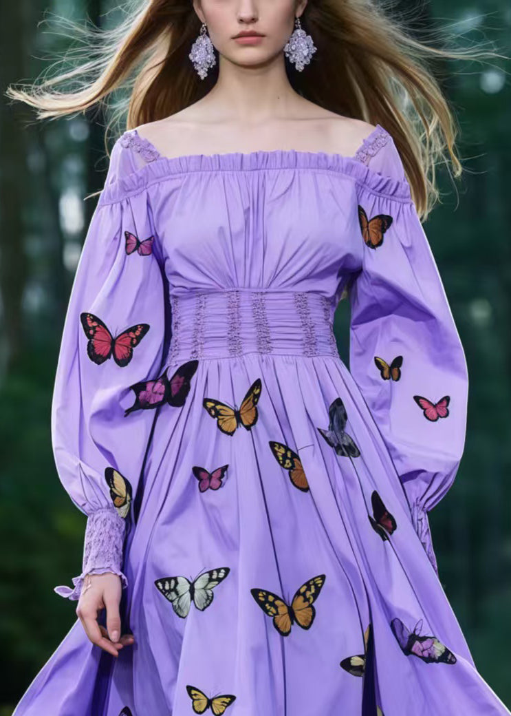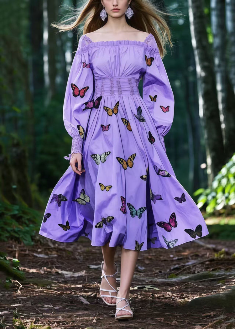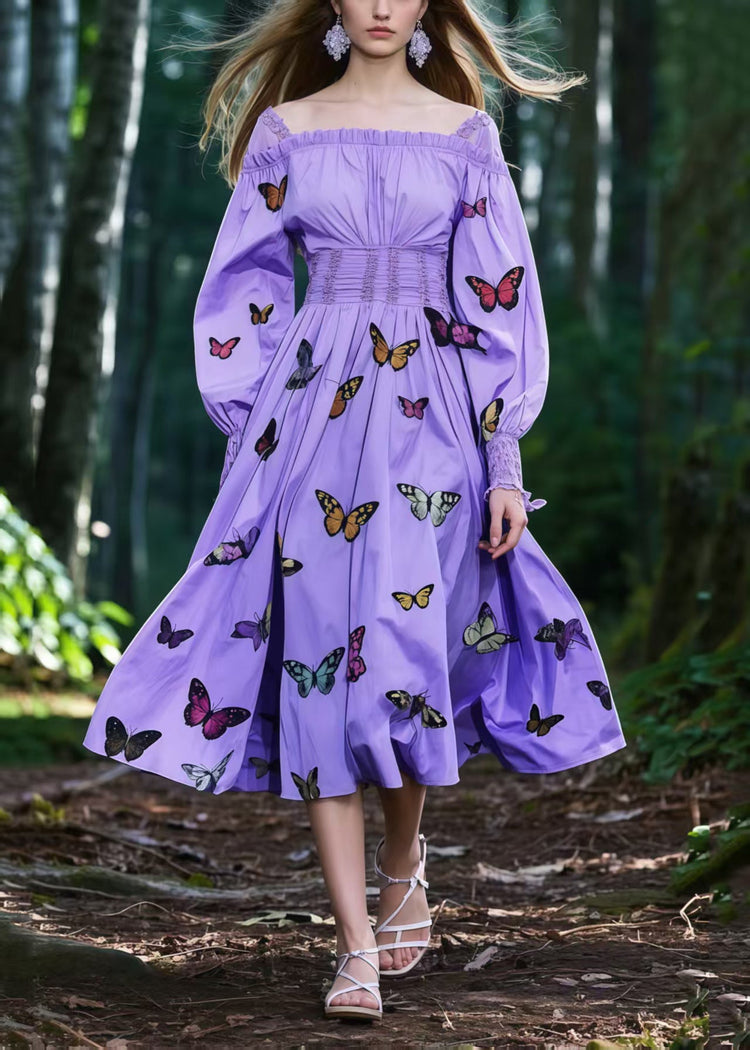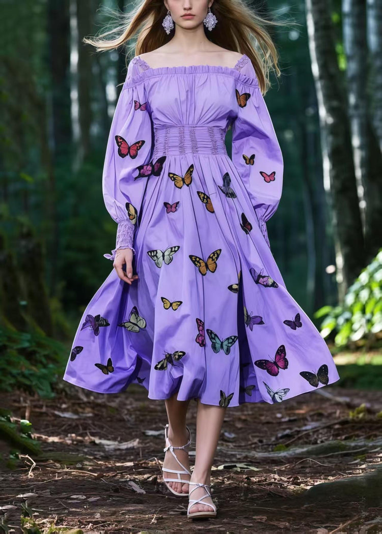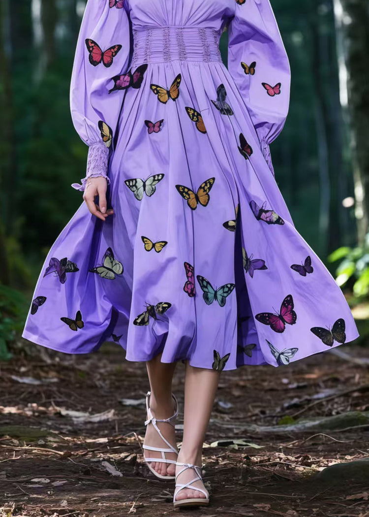 French Lavender Square Collar Butterfly Cotton Party Dresses Spring