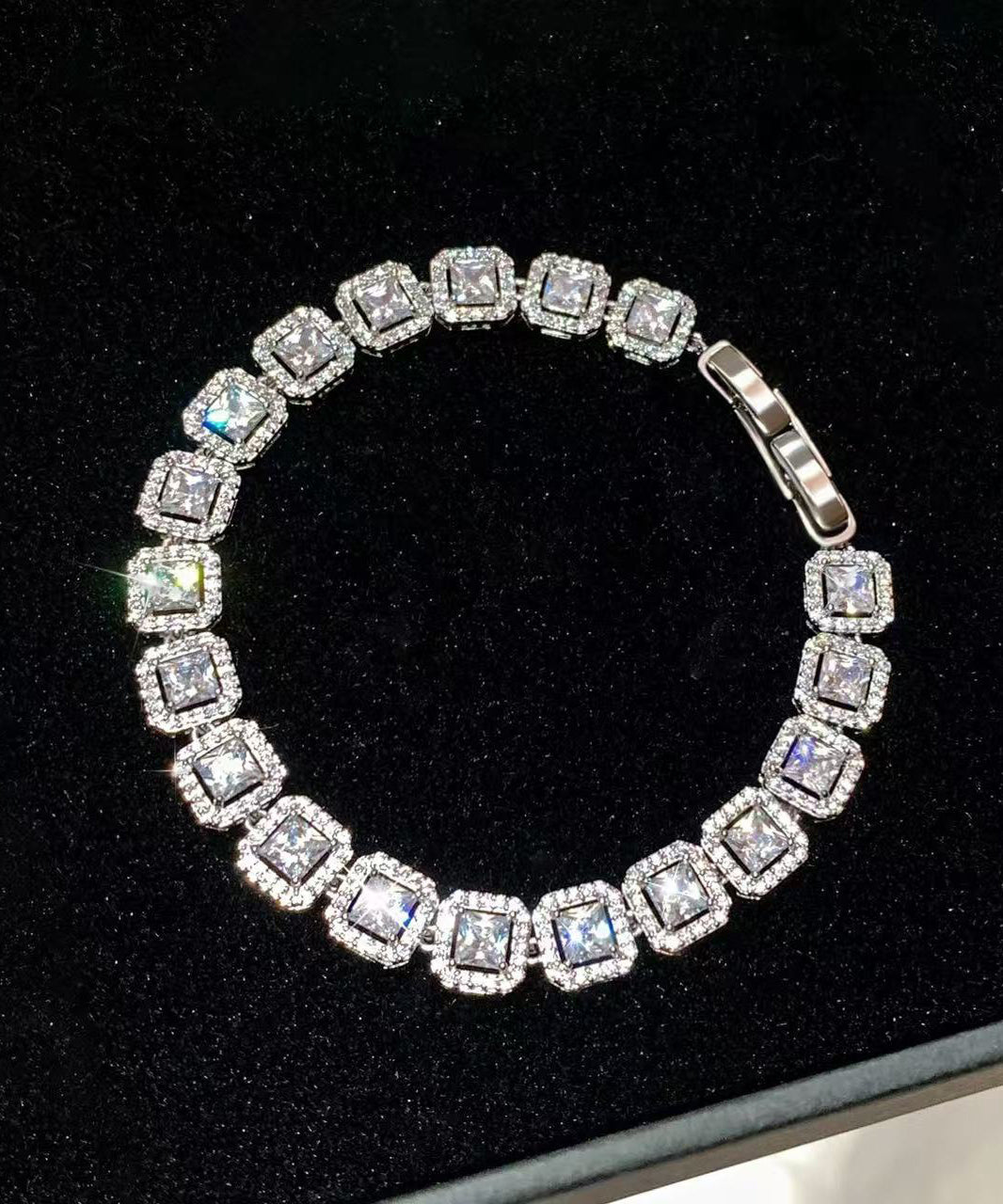 Beautiful Silvery Square Zircon Chain Bracelet - Omychic