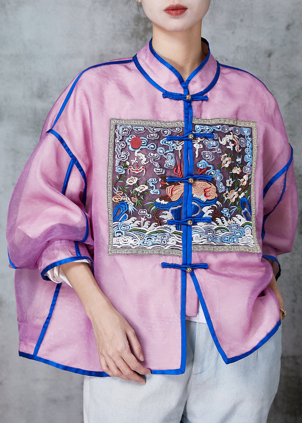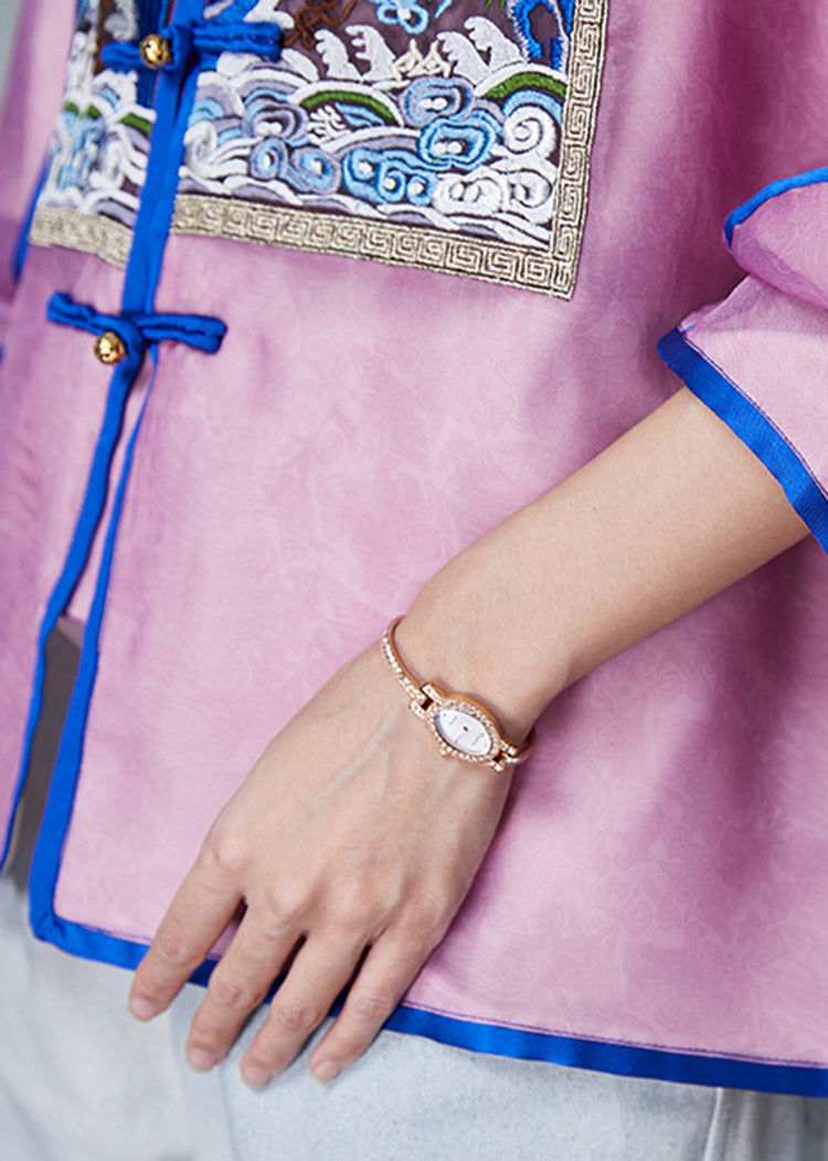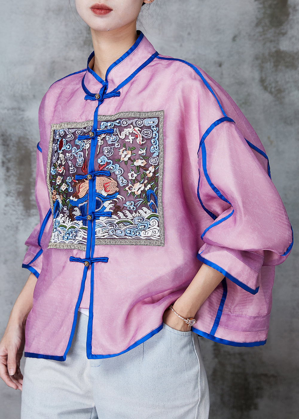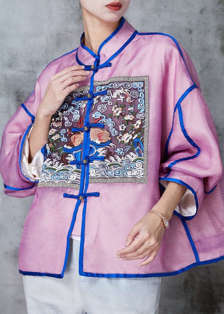 Art Purple Embroidered Chinese Button Silk Coats Spring