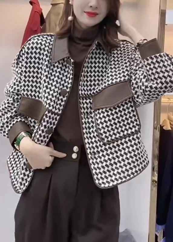 French Coffee Peter Pan Collar Button Cotton Coat Long Sleeve