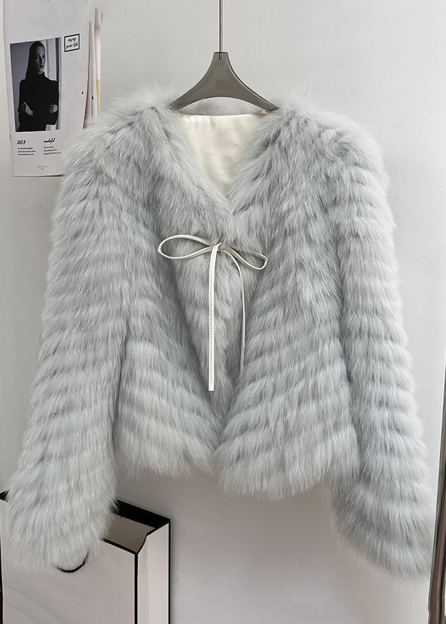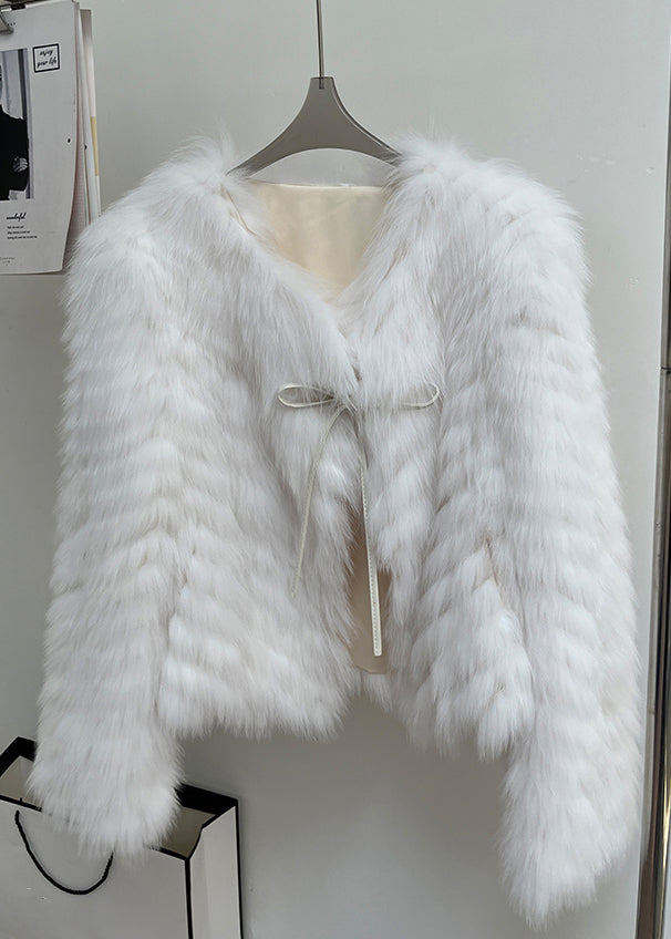 Italian Milk Tea Color V Neck Lace Up Leather And Fur Coats Winter