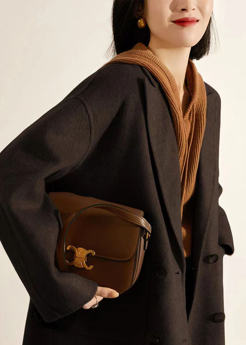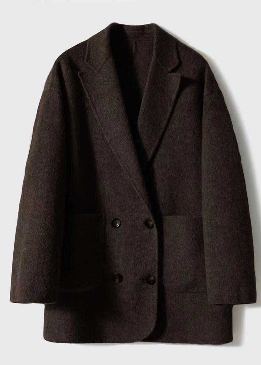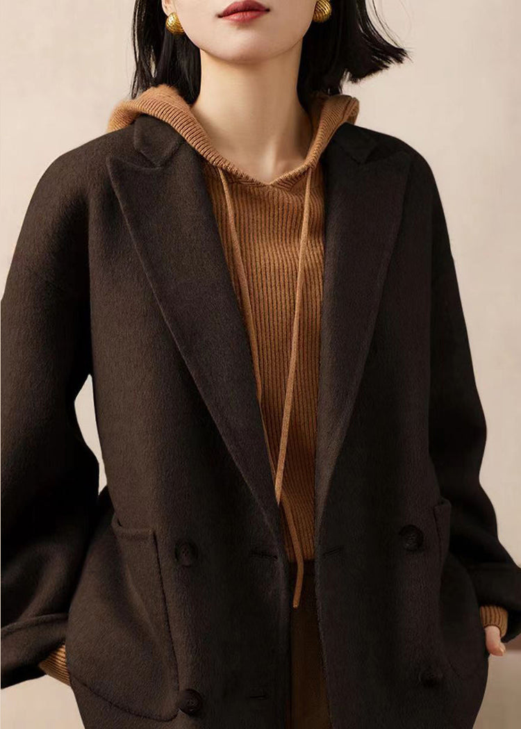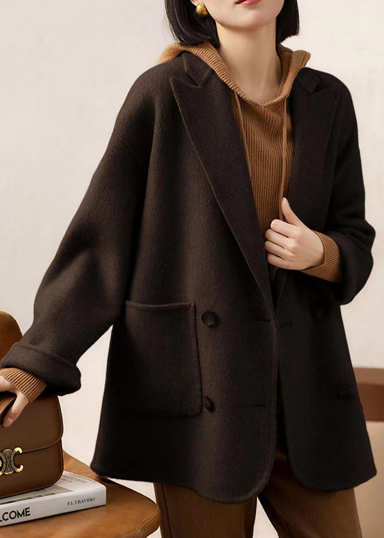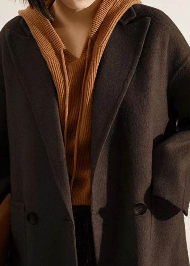 Loose Coffee Peter Pan Collar Pockets Patchwork Woolen Coats Winter
