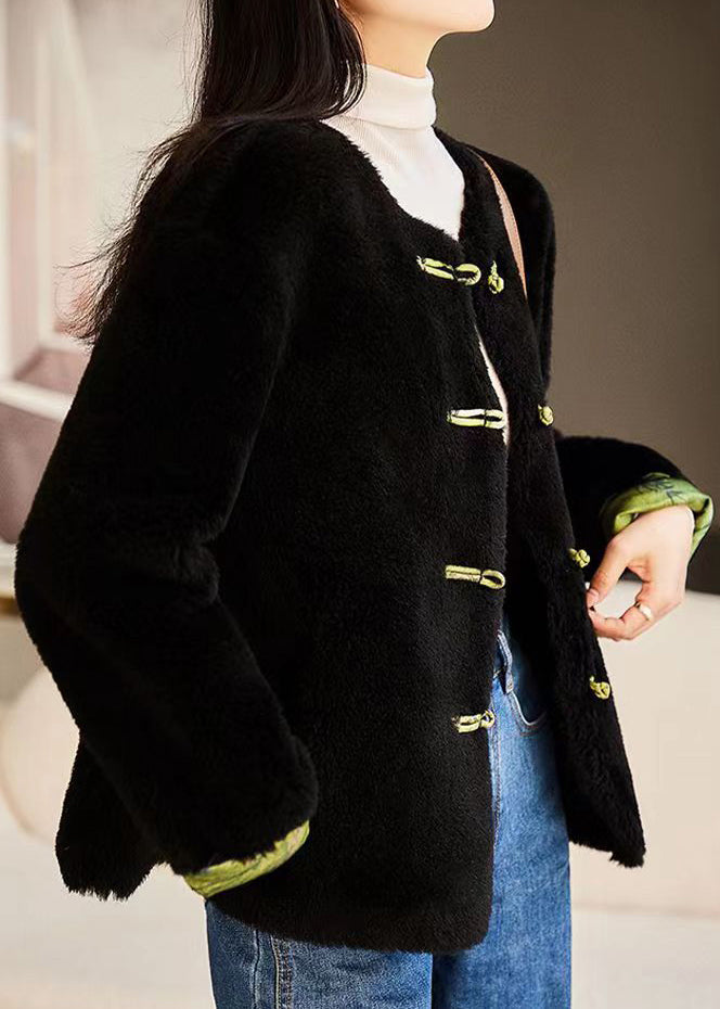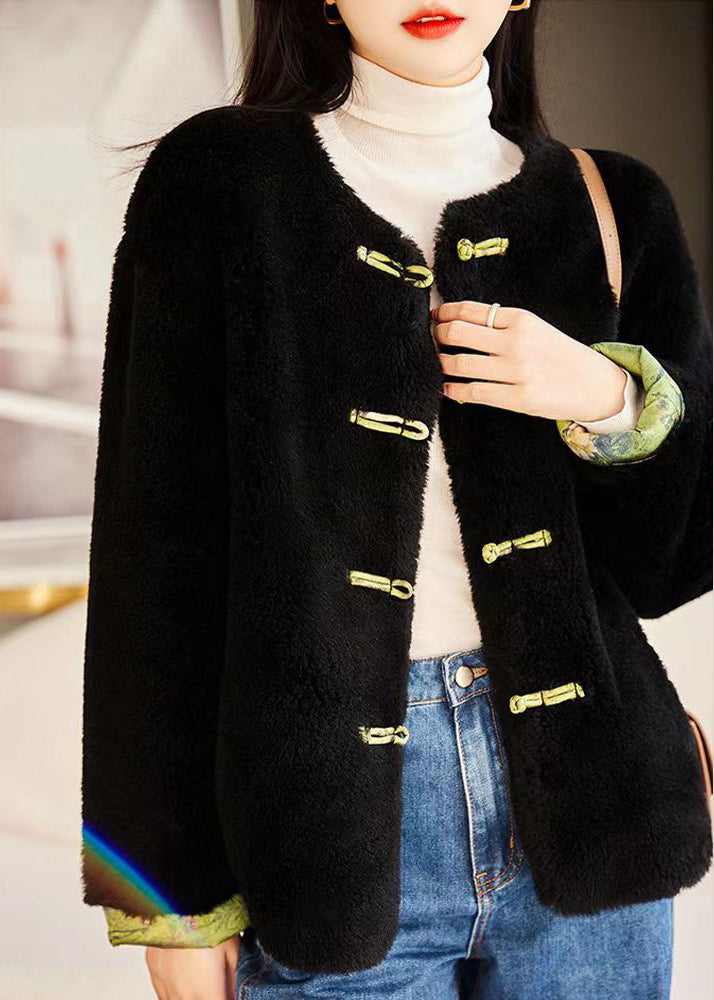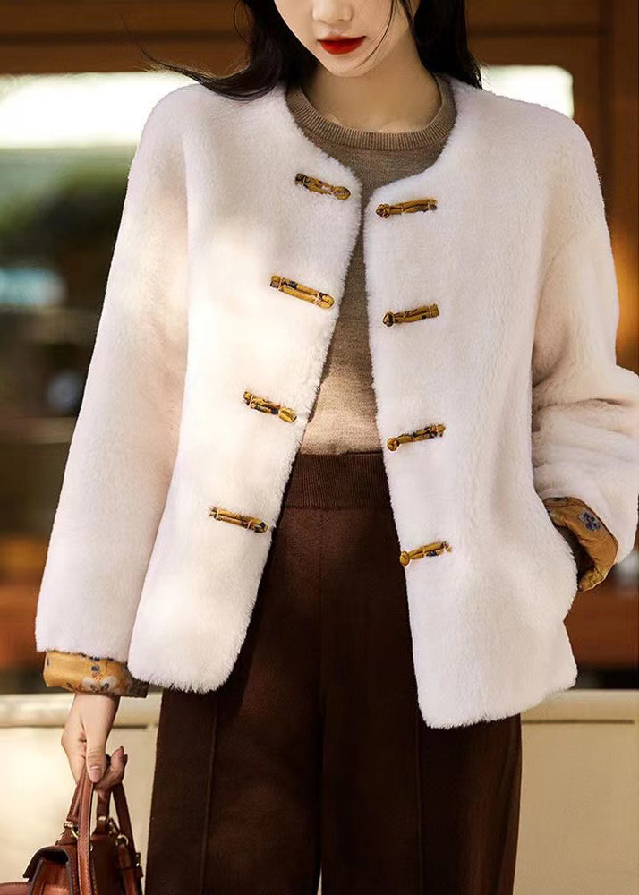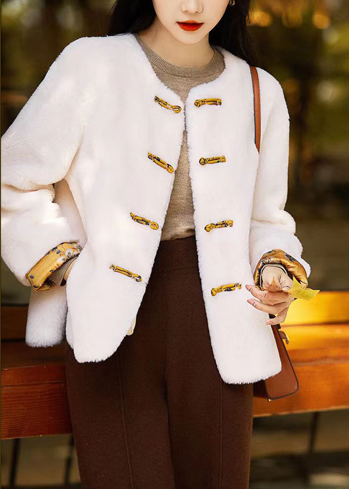 Original White O Neck Chinese Button Patchwork Wool Coats Winter