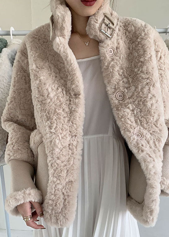Plus Size Apricot Button thick Faux Fur Winter Coats