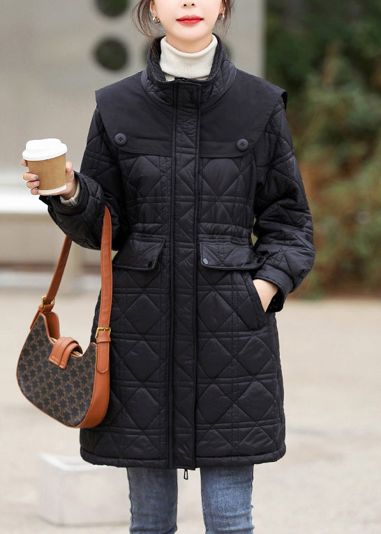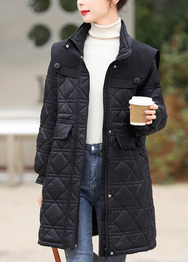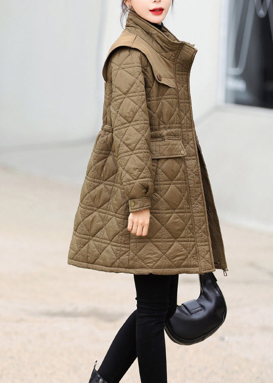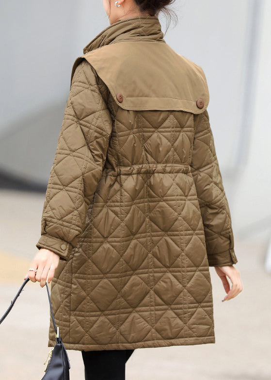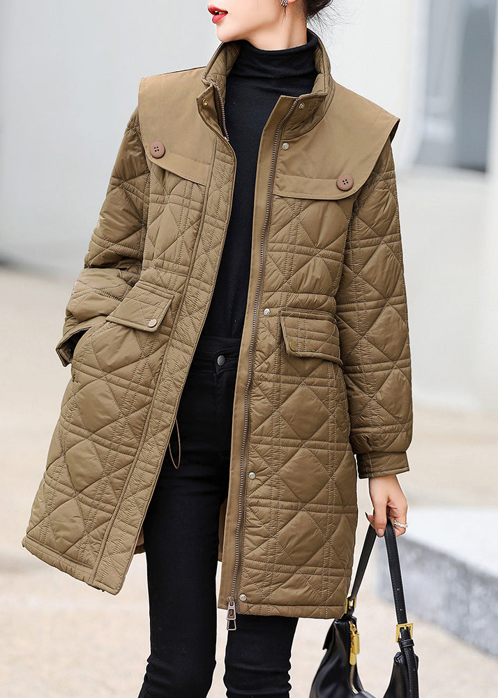 Style Coffee Stand Collar Pockets Patchwork Fine Cotton Filled Winter Coat