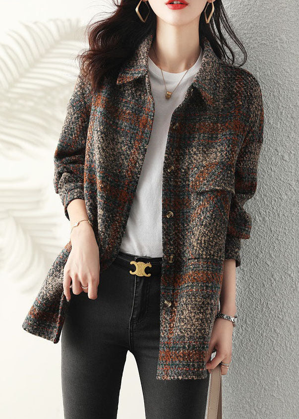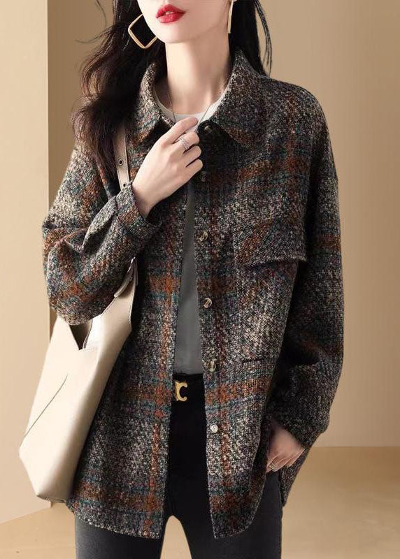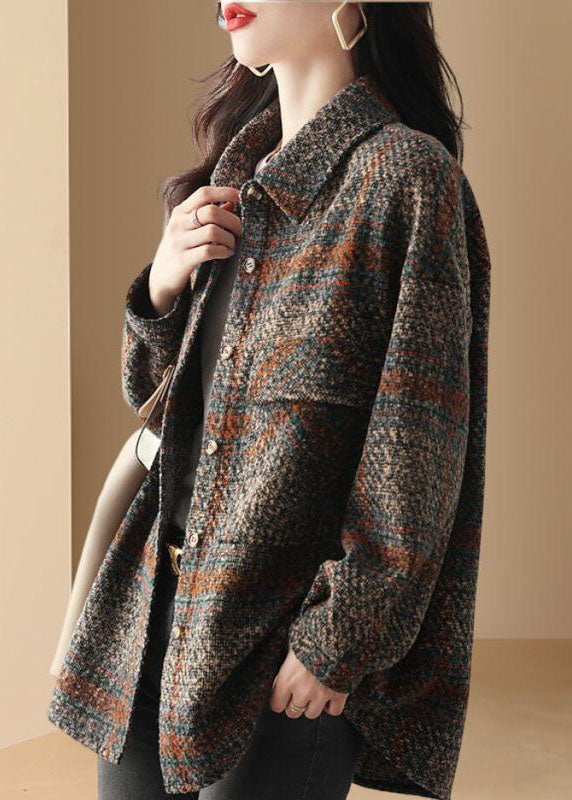 Unique Peter Pan Collar Plaid Button Thick Coat Long Sleeve