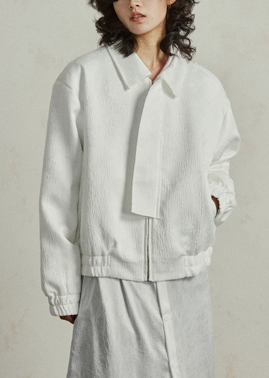 White Jacquard Pockets Silk Fall Coat Peter Pan Collar