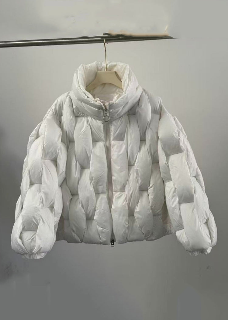 Stylish White Stand Collar Zip Up Fine Cotton Filled Parkas Winter