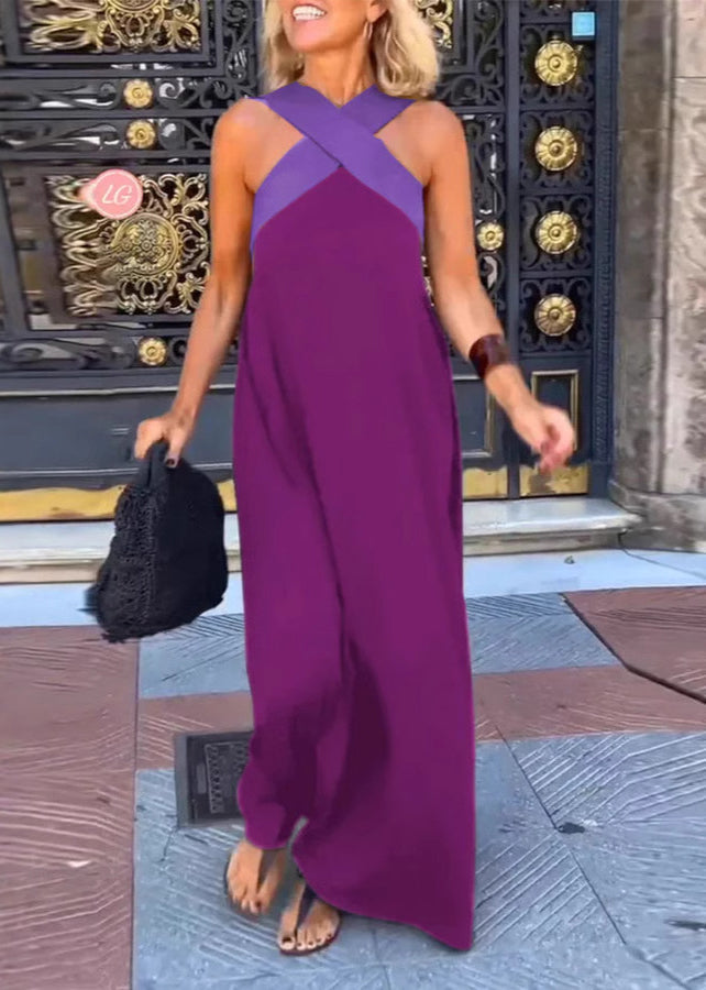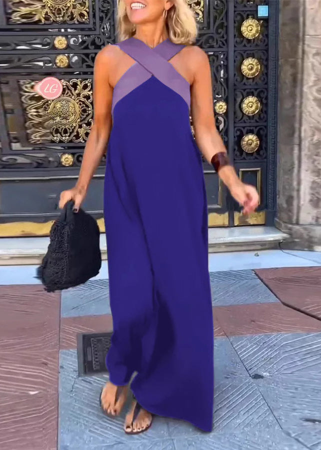 Plus Size Black Patchwork Crossing Holiday Dresses Summer