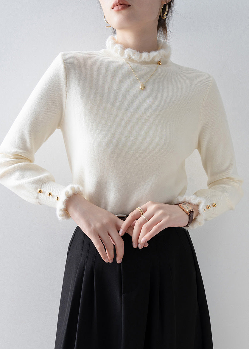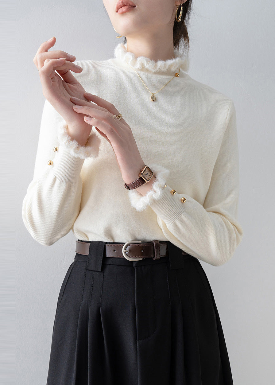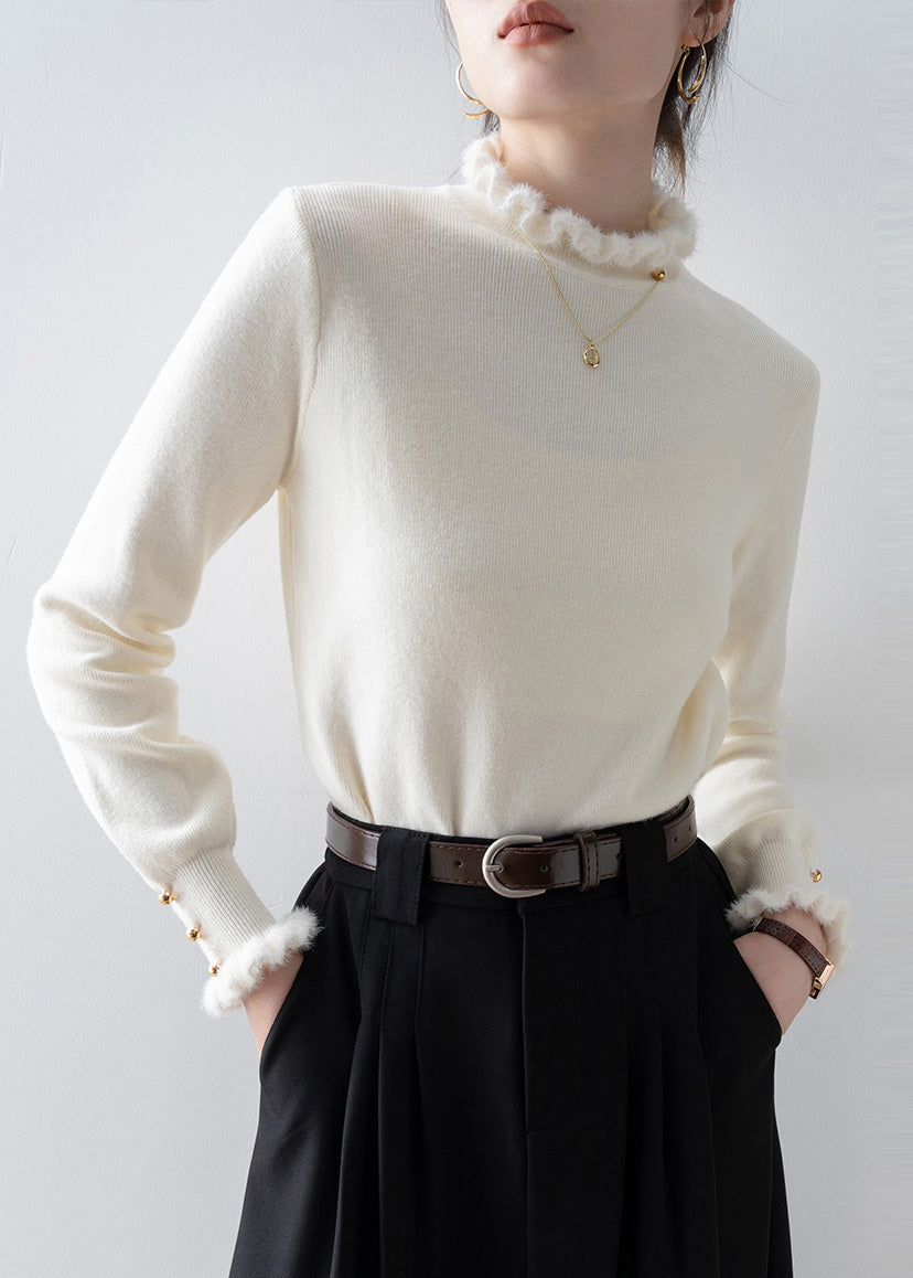 Beautiful White Ruffled Patchwork Faux Fur Sweaters Winter