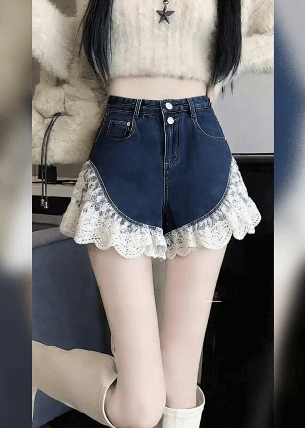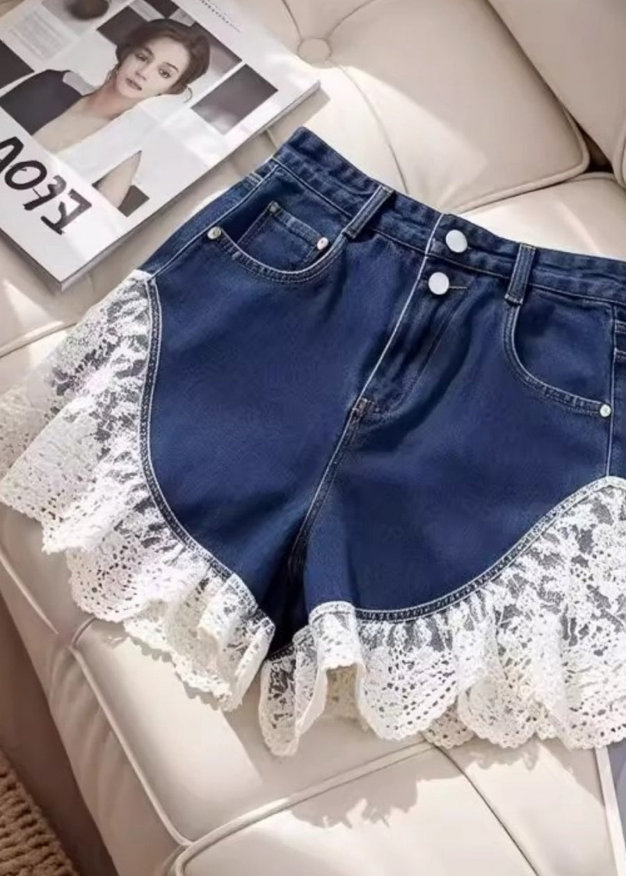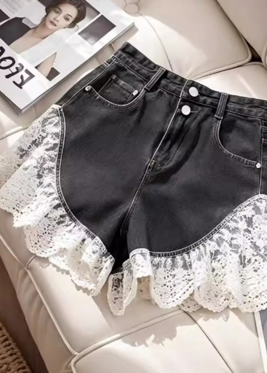 Sexy Black Silm Fit Lace Patchwork Denim Shorts Summer