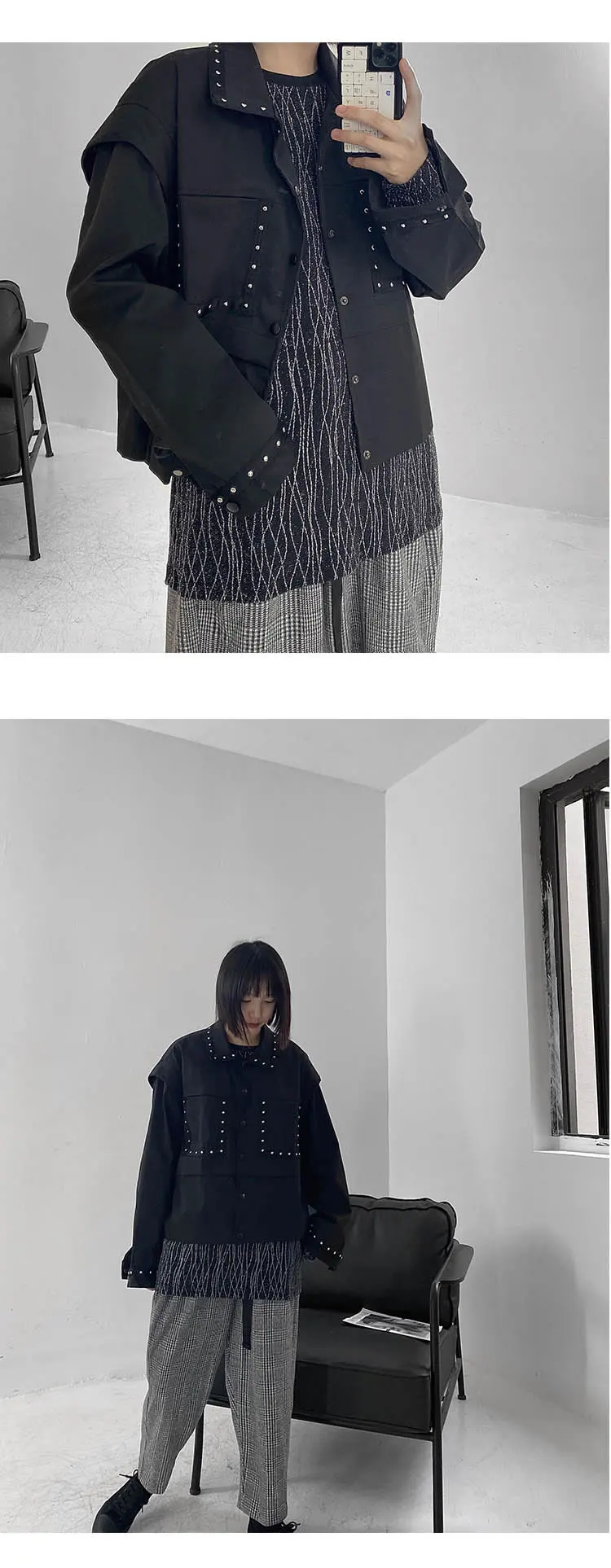 Fashion New Full Sleeve Loose Rivet Single Breast Small Fresh Casual Style 2020 Winter Jacket Coat