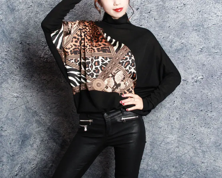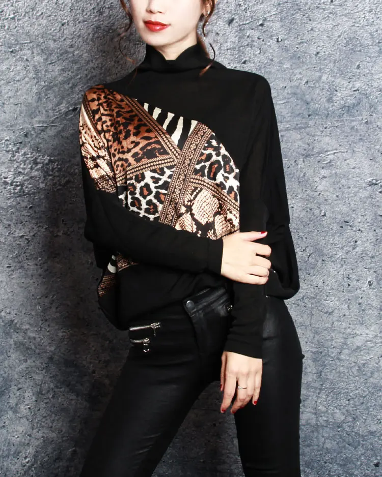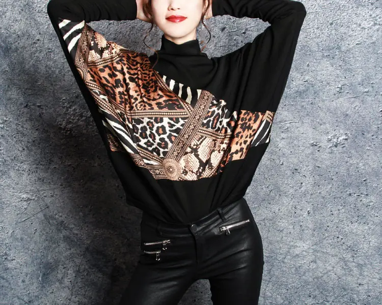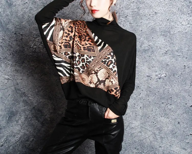 Patchwork Pleated 2020 Winter Elegant Casual Style Loose Tee Top