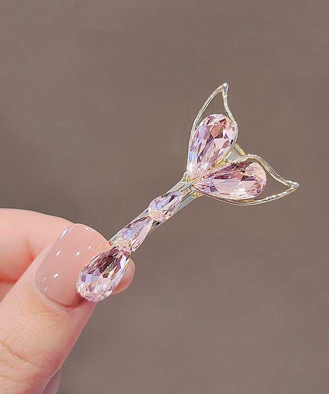 Elegant Pink Crystal Fish Tail Duckbilled Hairpin