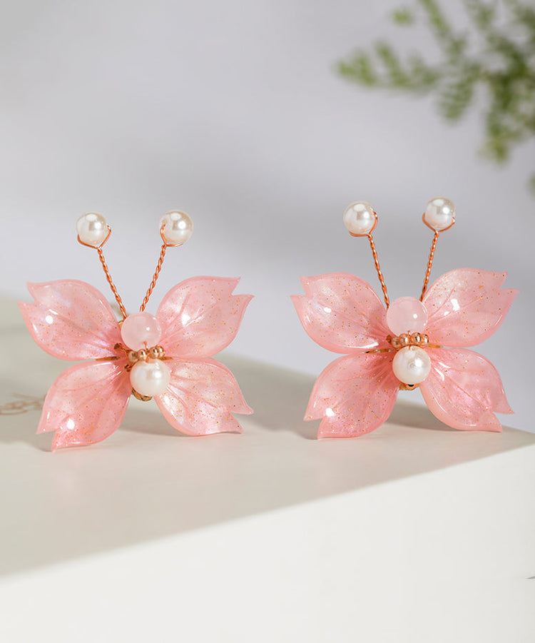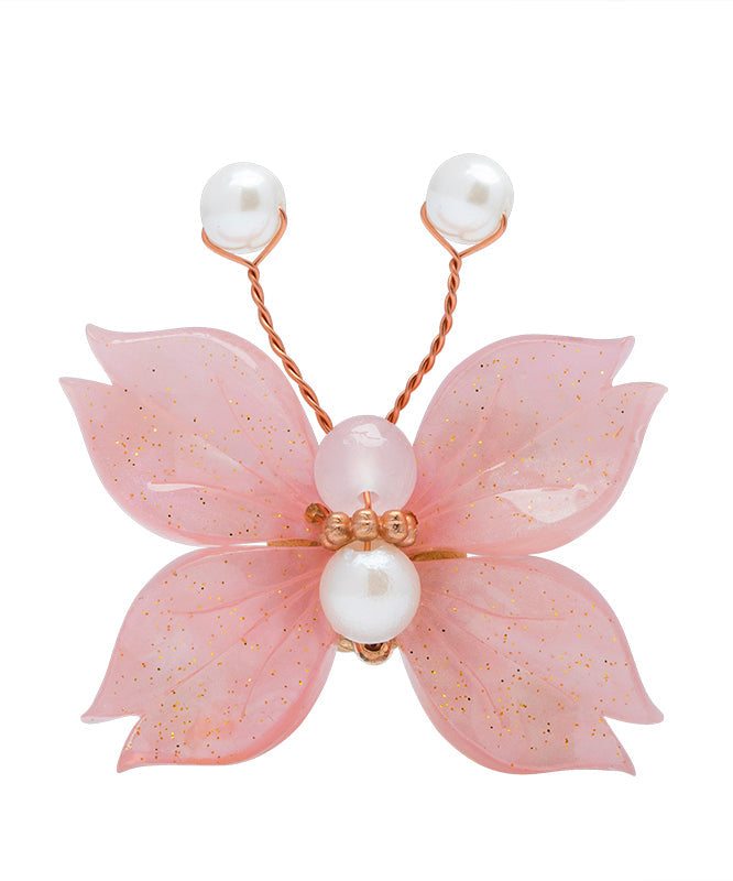 Fashion Pink Copper Alloy Pearl Colored Glaze Butterfly Hairpin