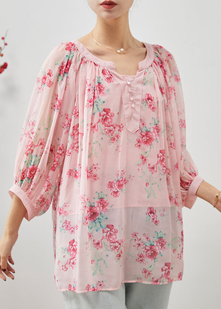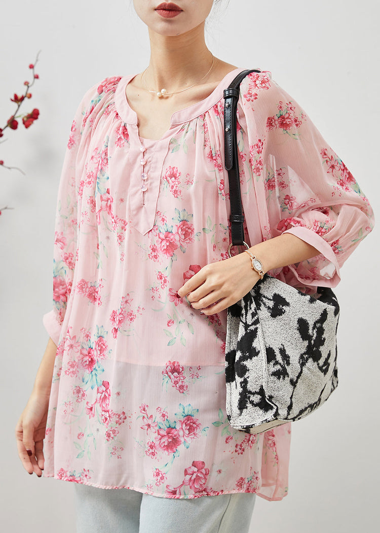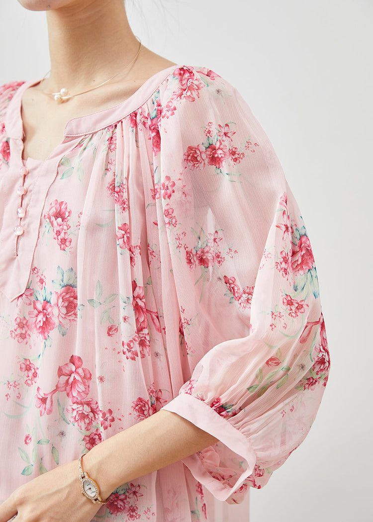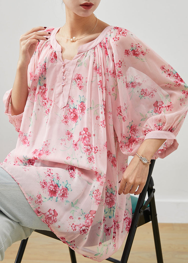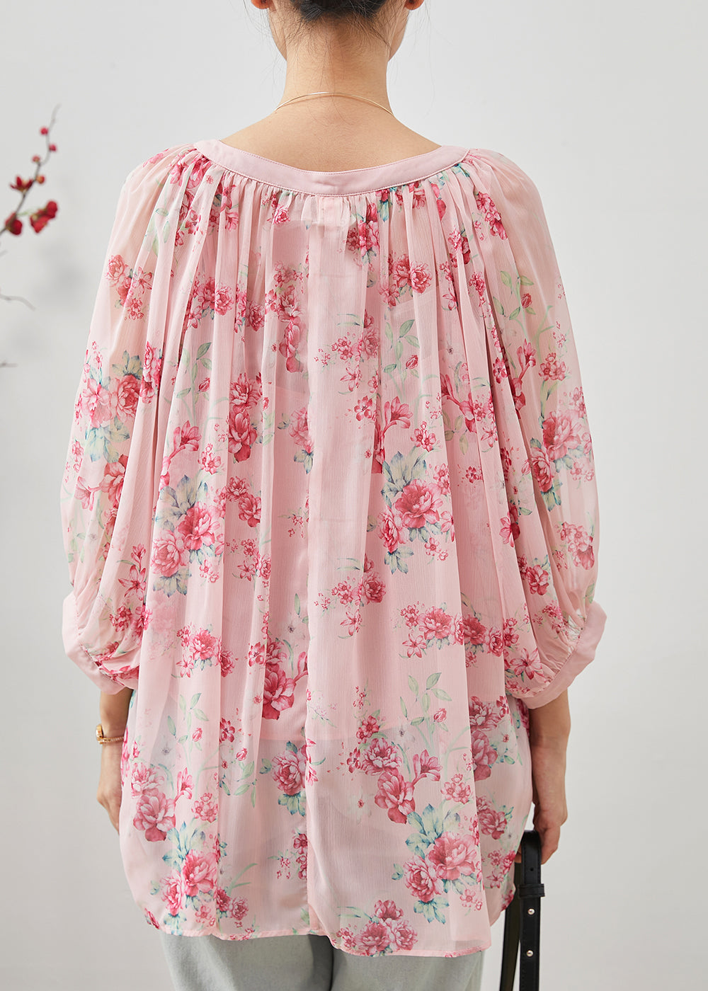 Natural Pink Oversized Print Chiffon Shirt Two Piece Bracelet Sleeve