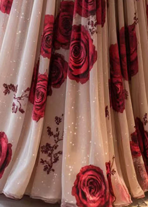 New Pink Print Wrinkled Chiffon Skirt Summer
