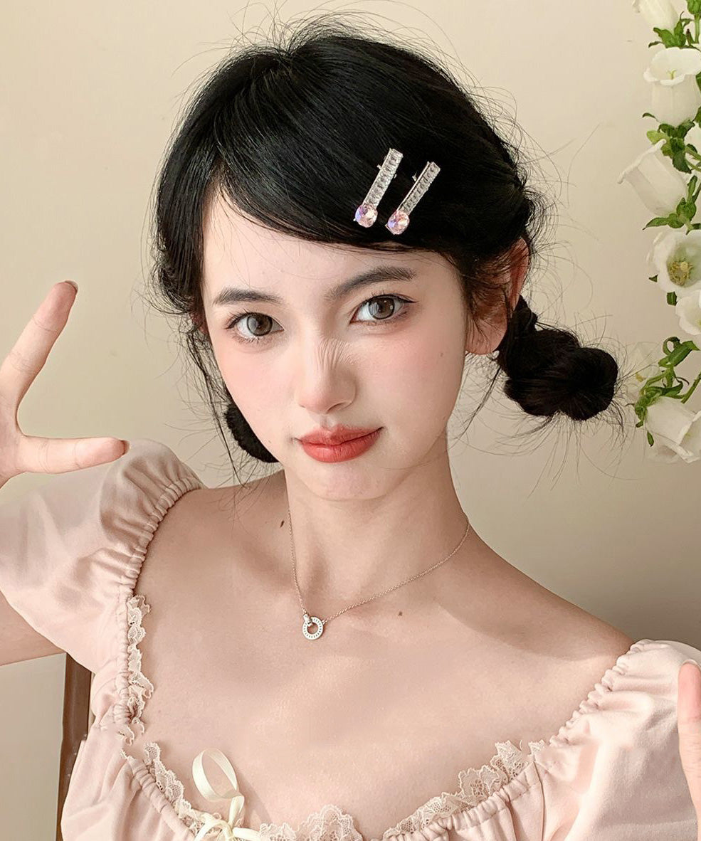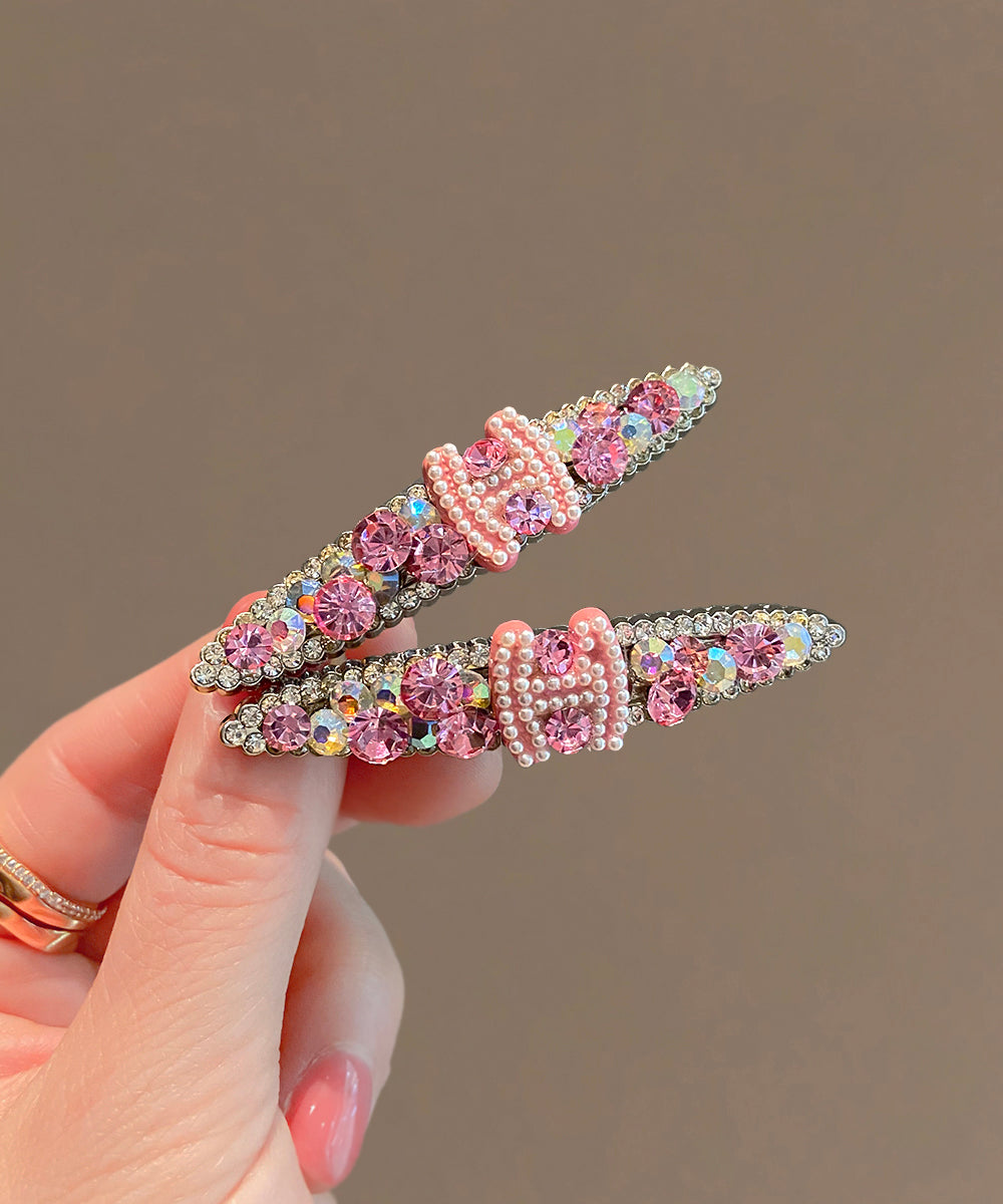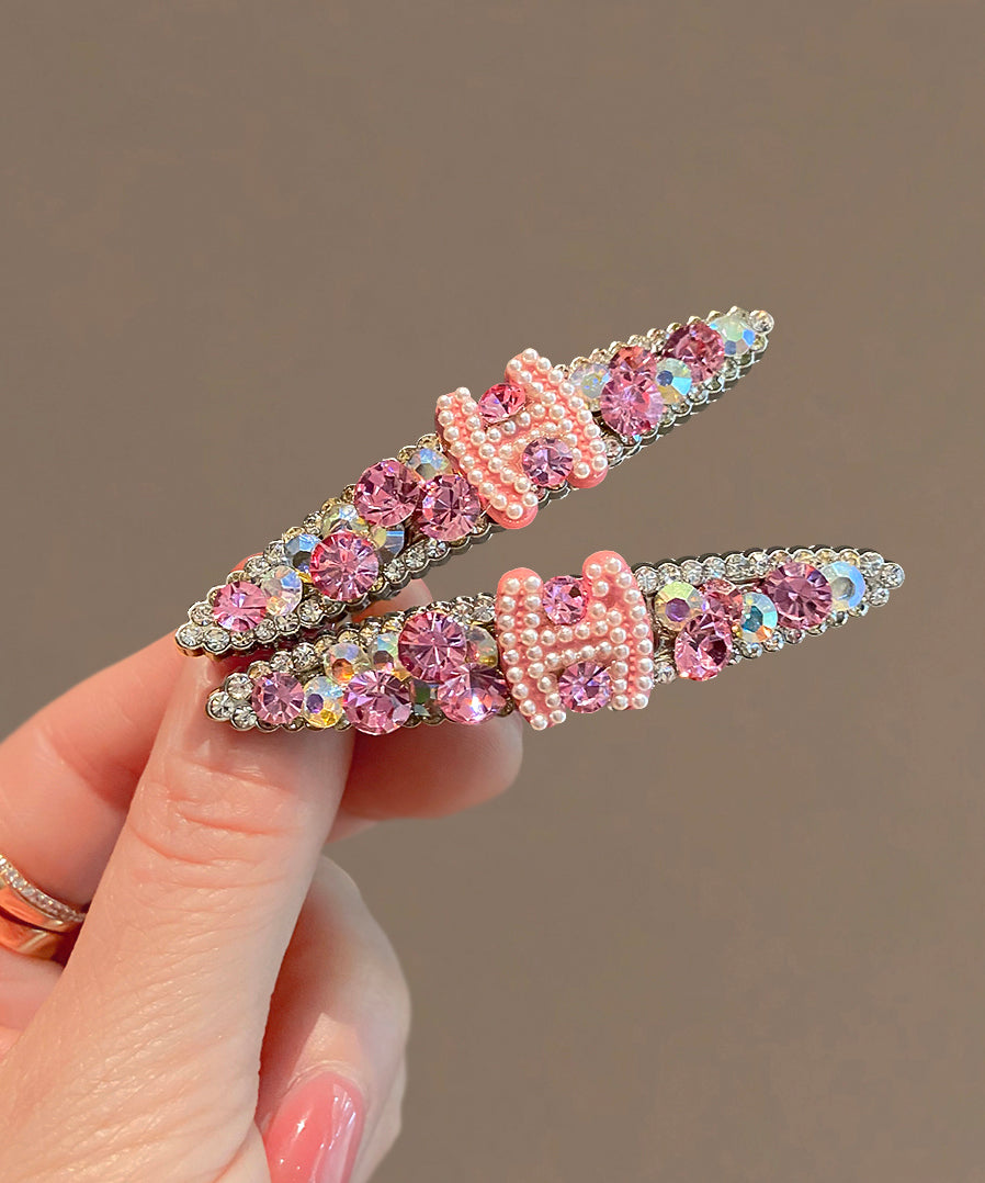 Cute Pink Metal Zircon Crystal A Pair Hairpin