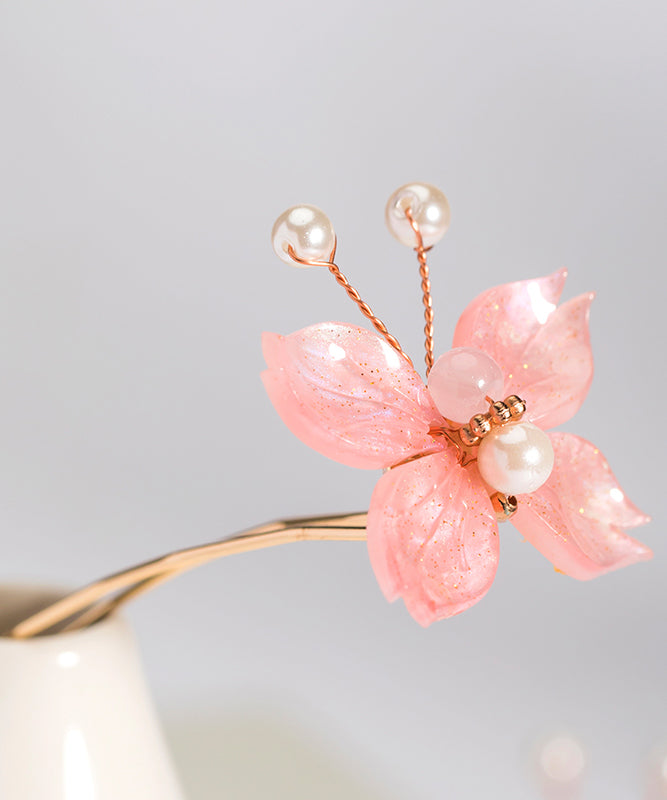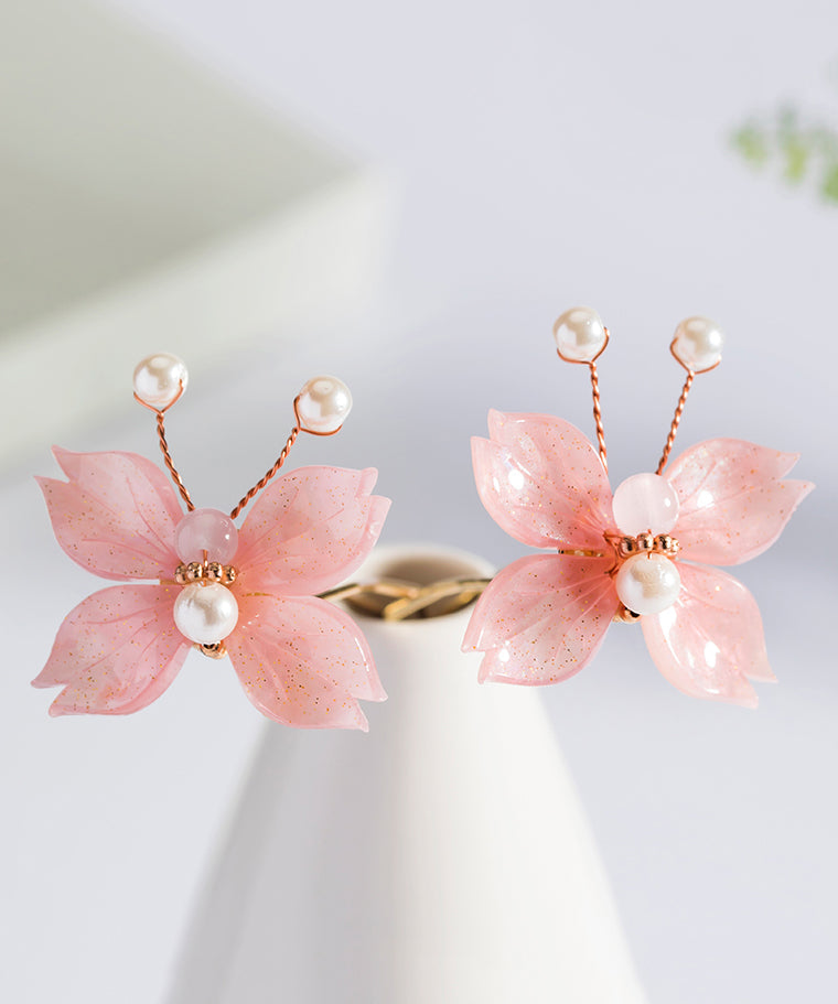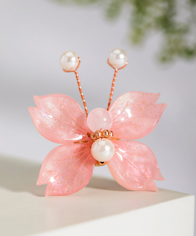 Fashion Pink Copper Alloy Pearl Colored Glaze Butterfly Hairpin
