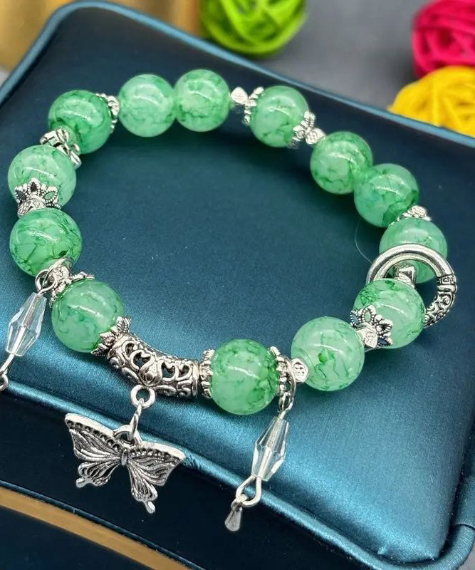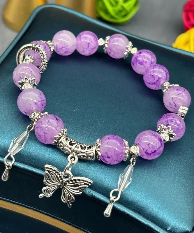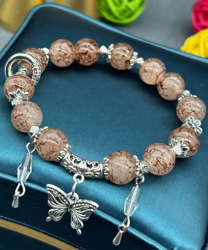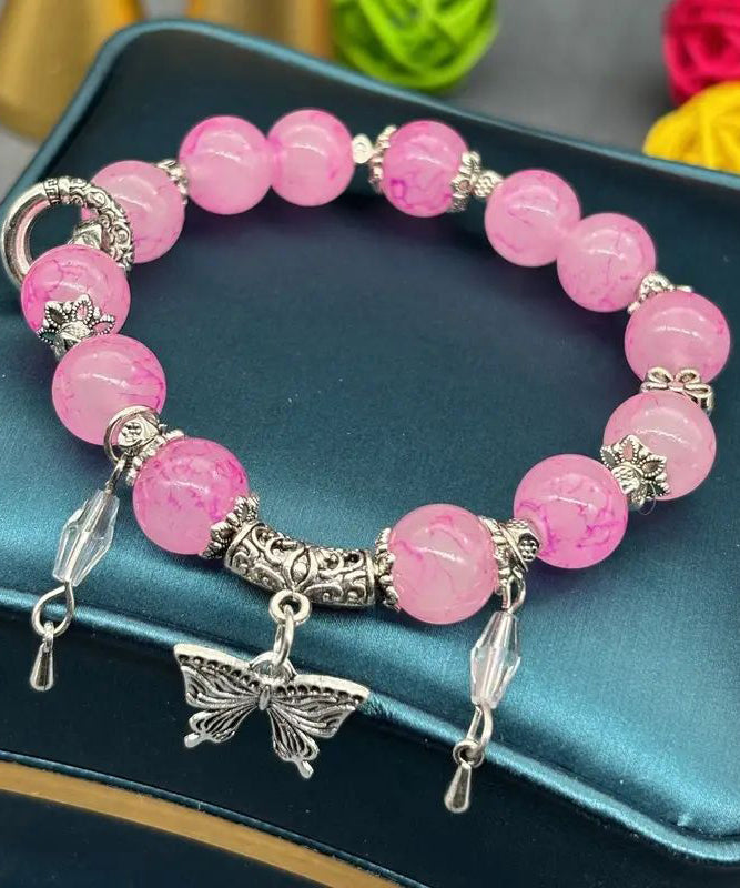 Handmade Pink Sterling Silver Butterfly Glass Bead Charm Bracelet