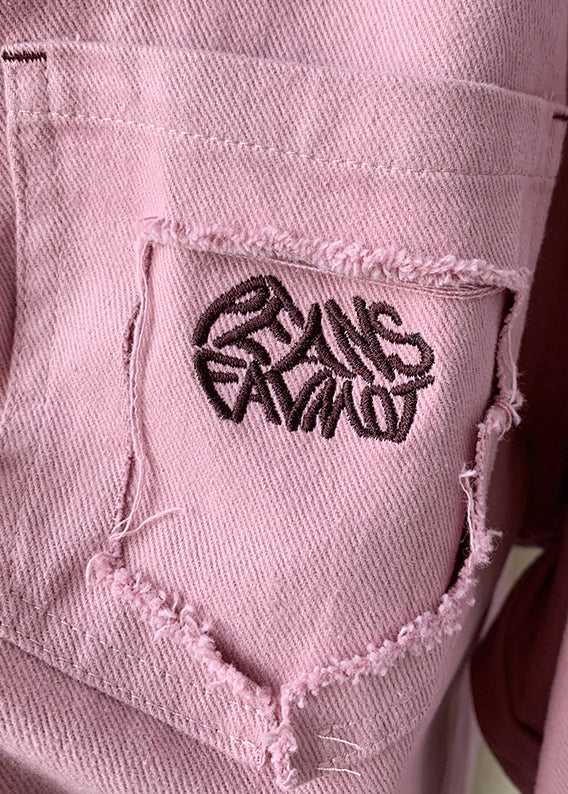 Loose Pink Peter Pan Collar Button Denim Blouse Top Fall