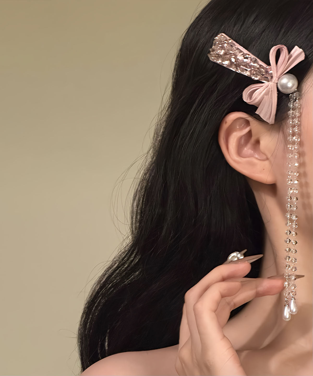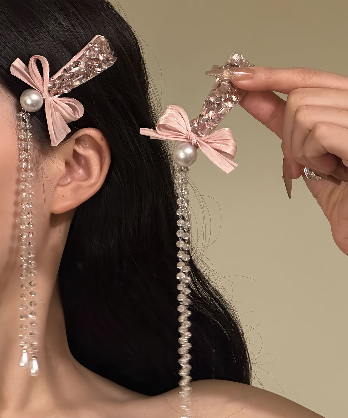 Original Design Pink Alloy Zircon Pearl Bow Tassel Hairpin