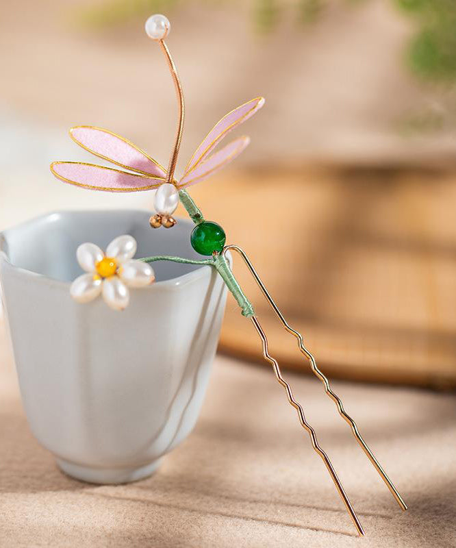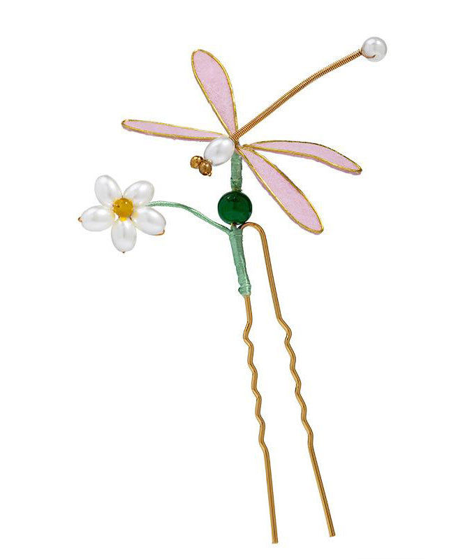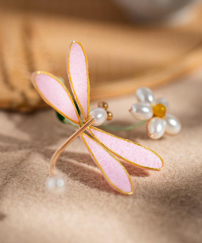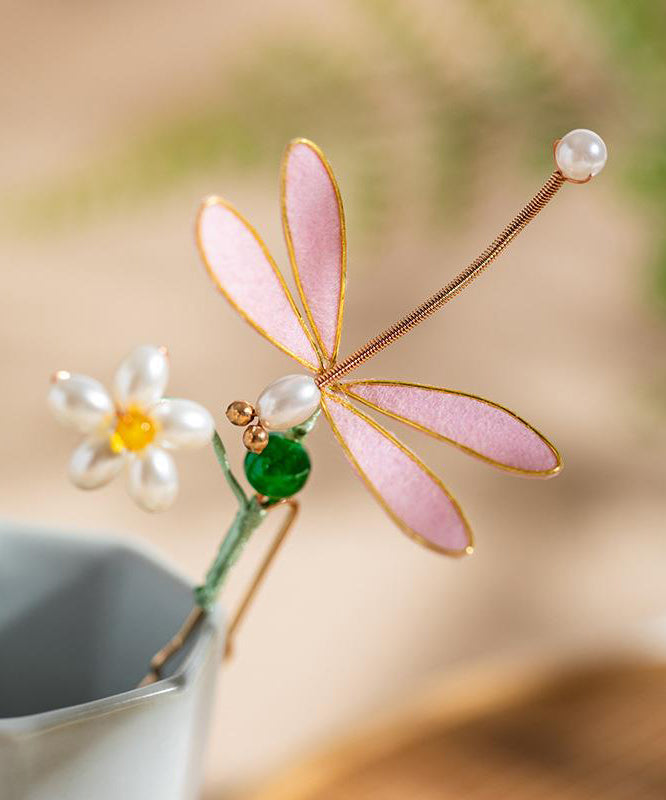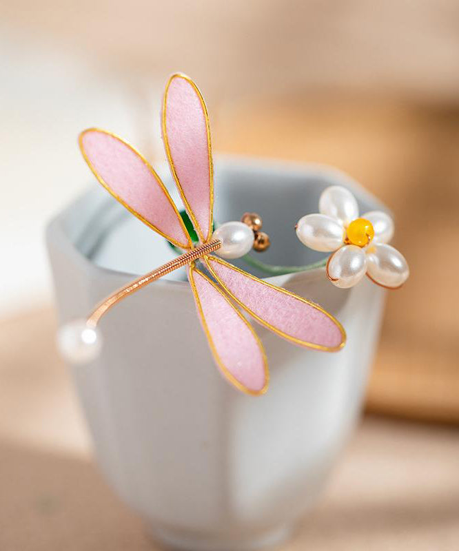 Retro Pink Alloy Pearl Colored Glaze Flannelette Dragonfly Hairpin