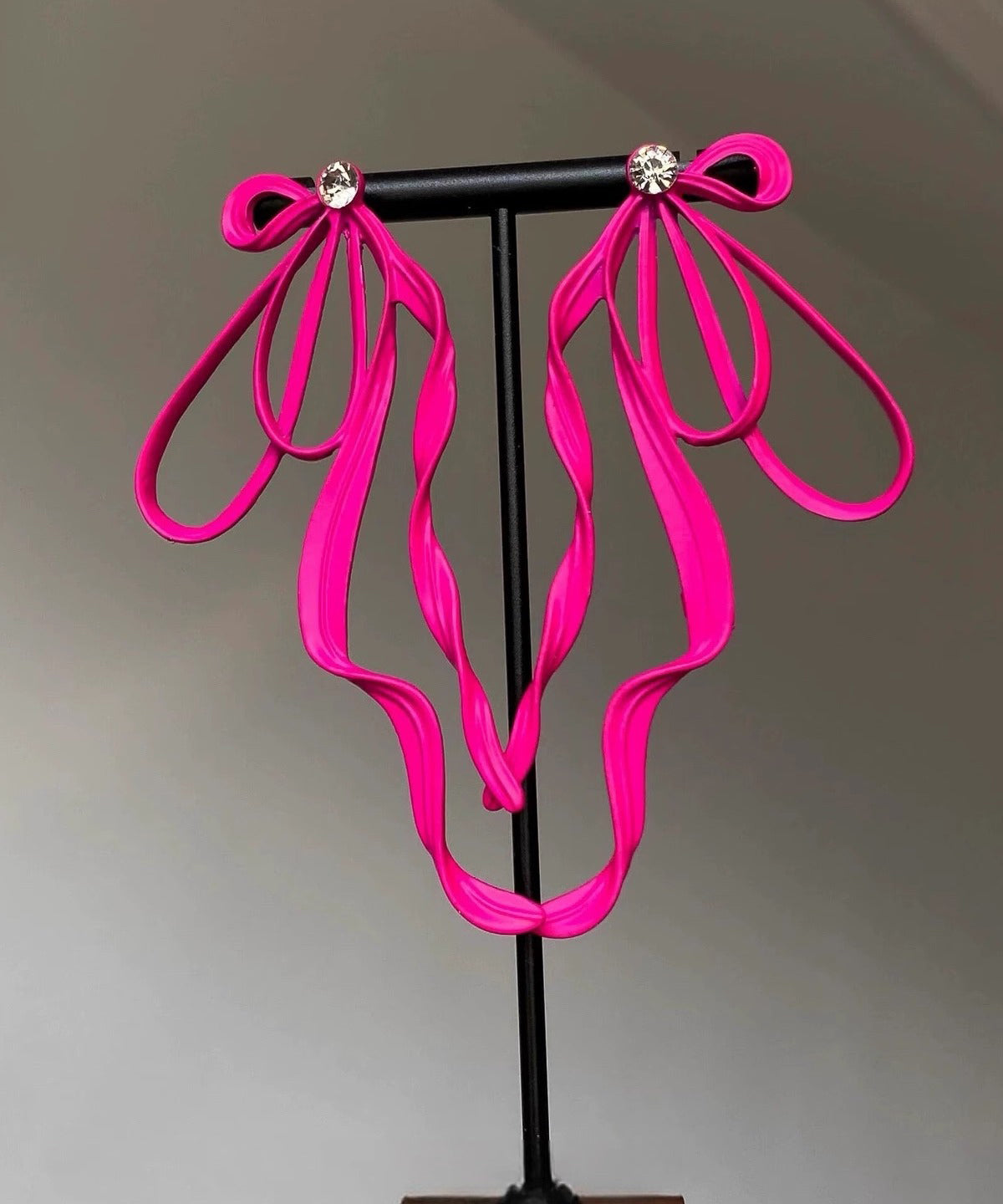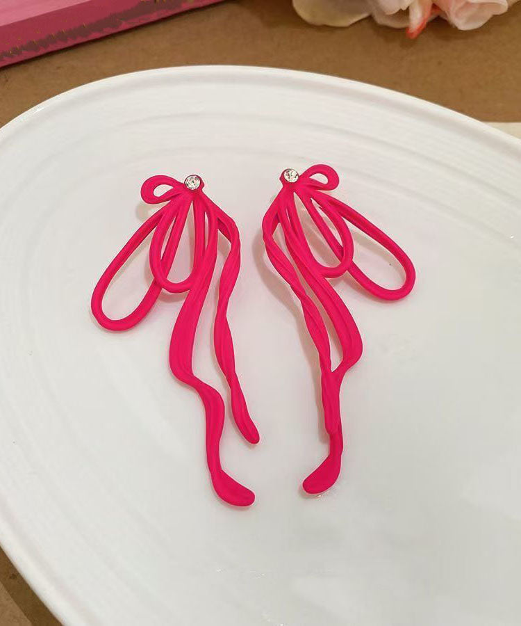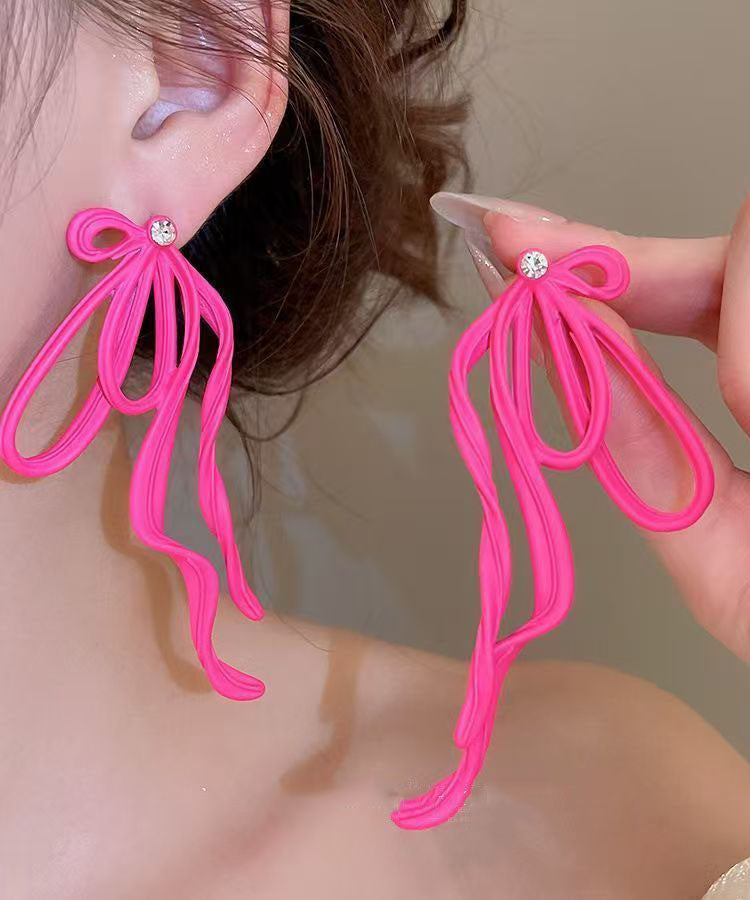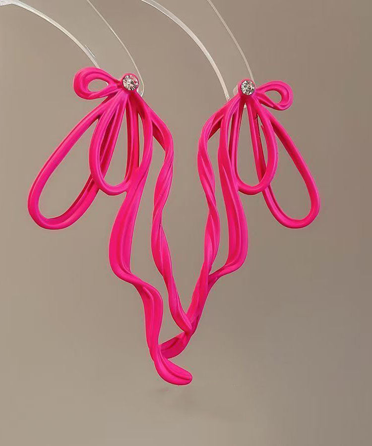 Unique Pink Alloy Zircon Bow Drop Earrings