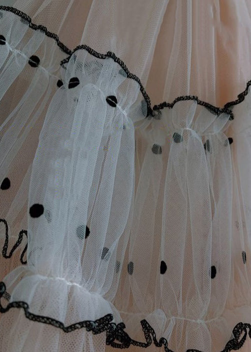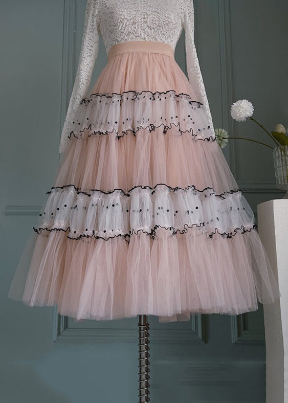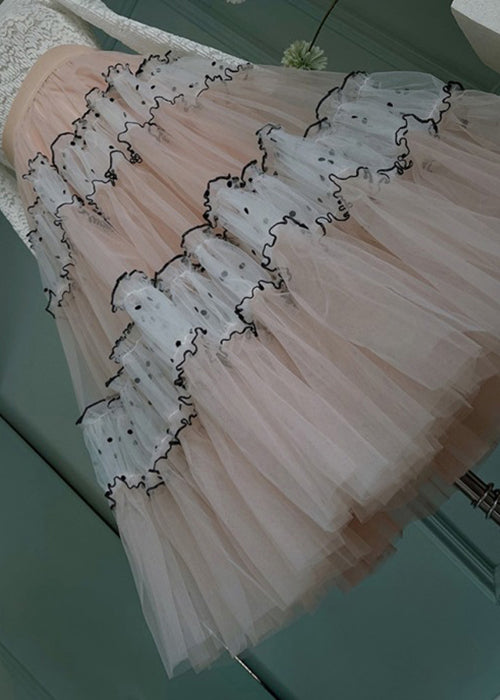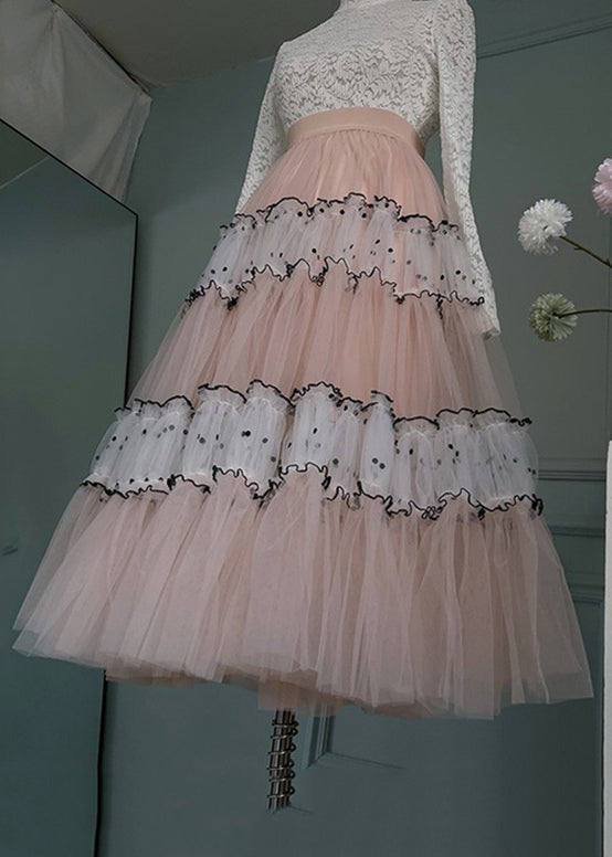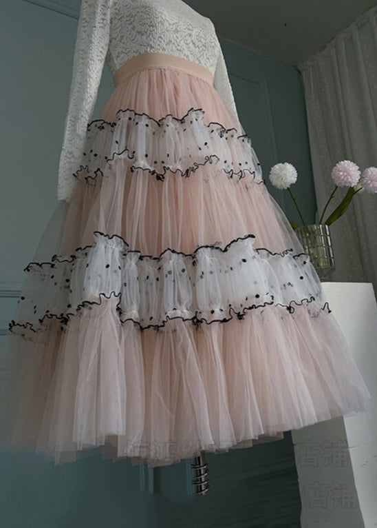 Art Pink Ruffled Elastic Waist Patchwork Tulle Skirts Summer