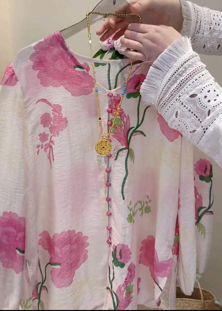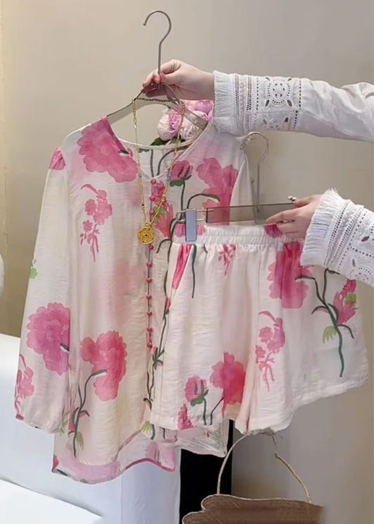 New Pink Print Shirts And Shorts Blouse Tops Fall