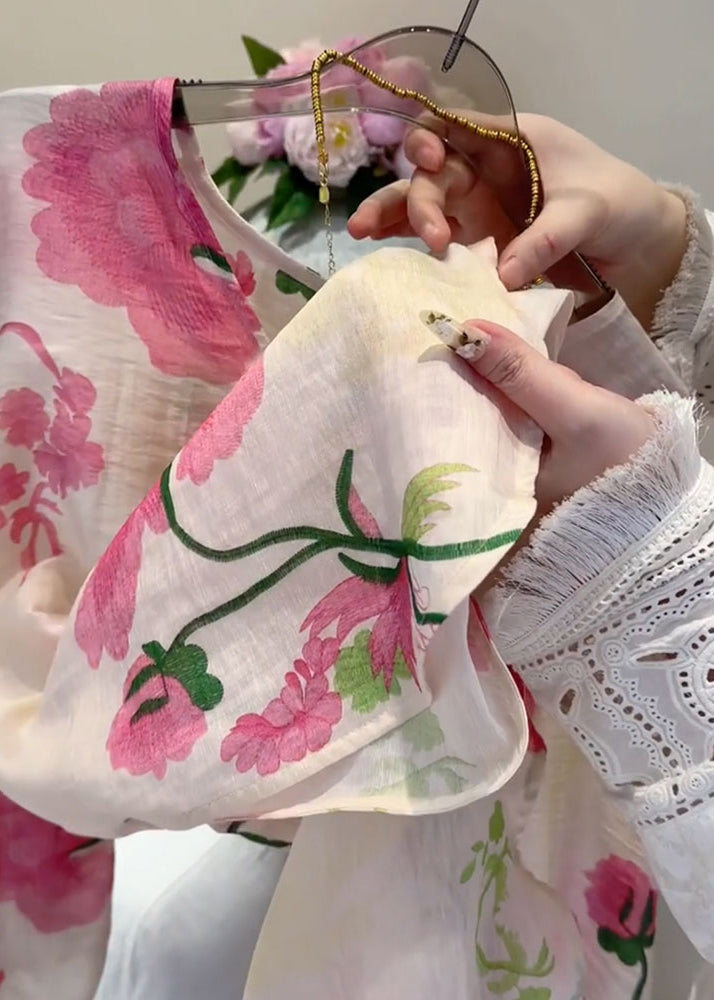 Elegant Pink Print Cotton Holiday Dress Butterfly Sleeve