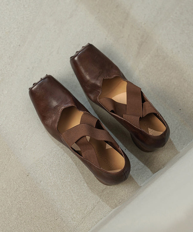 Pink Chunky Heel Horsehide Elegant Splicing Cross Strap