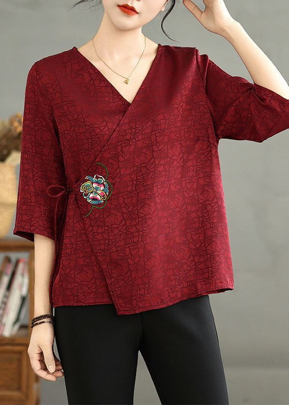 Beautiful Mulberry Embroidered Silk Shirt Half Sleeve